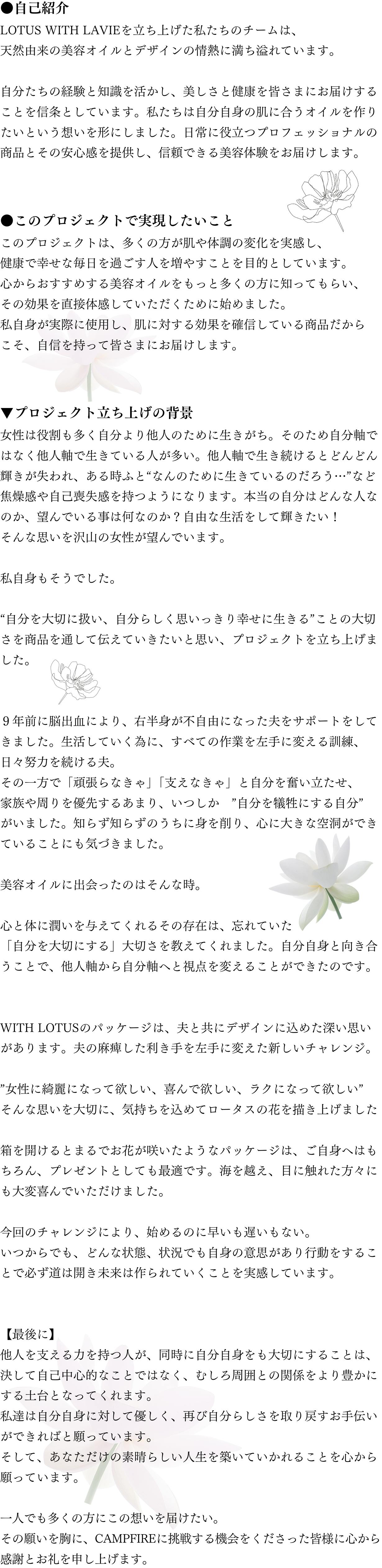 ●本文中に記載させていただいたスケジュールは、あくまでプロジェクト公開時点の予定です。万が一、お届けに遅れが生じる場合は、速やかにご報告いたします。