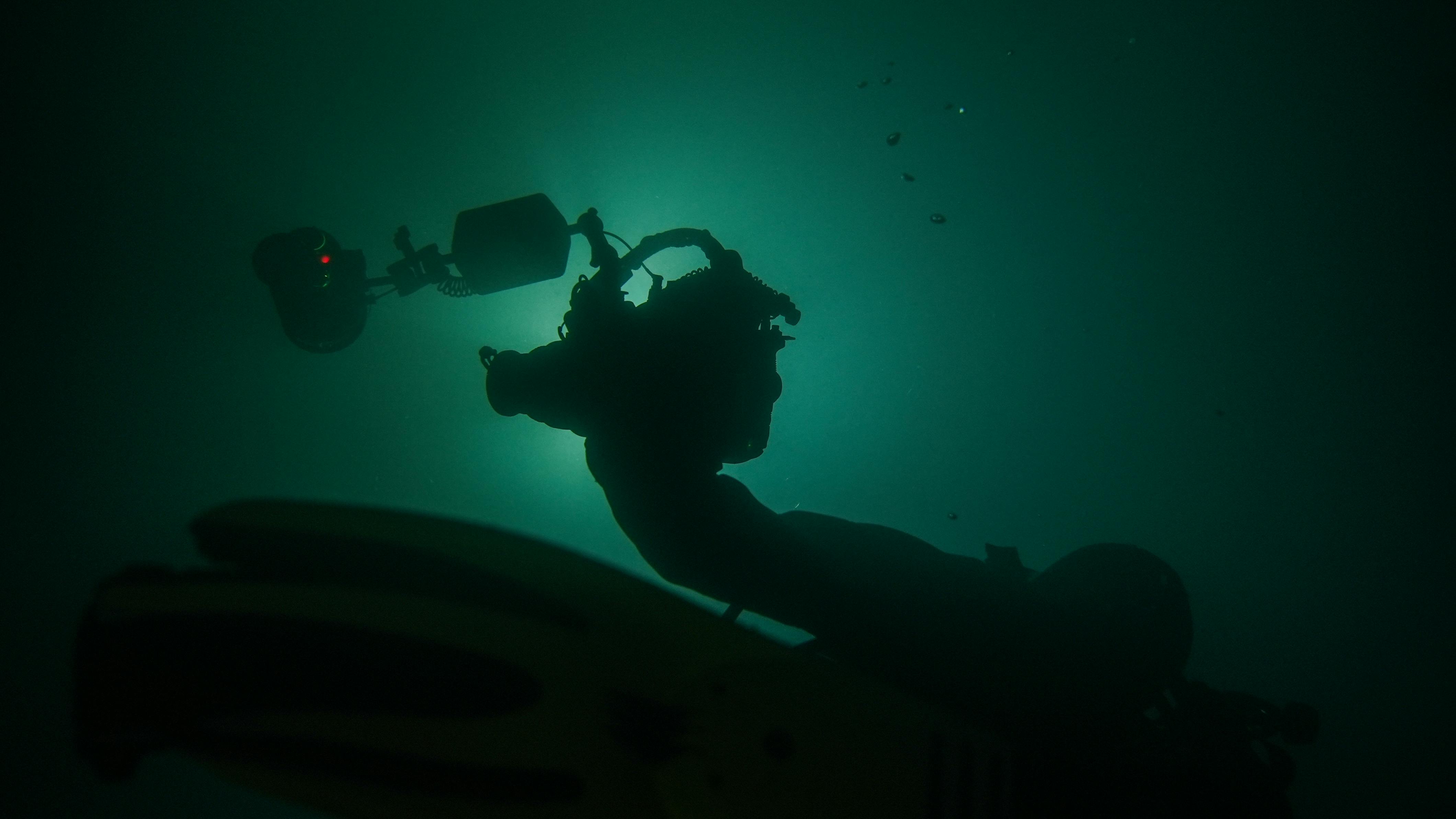 平衡感覚が無くなるナイトダイビングではバディやインストラクターを見失わないように必死。片手でカメラとライトを持つのは難しい。