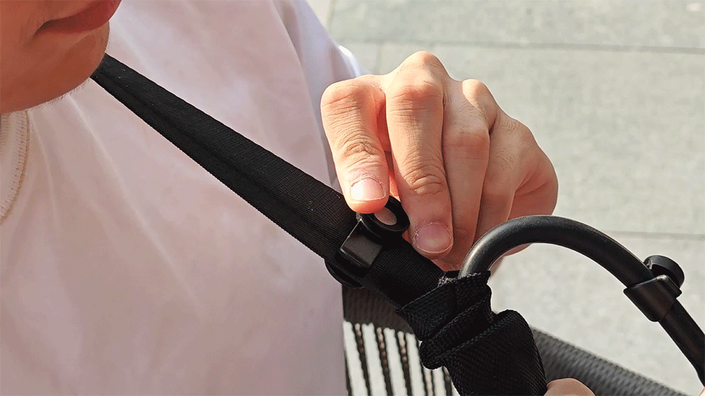 バッグの底部に設置されたストラップは開閉可能で、傘や撮影用三脚、自転車のロックなどを簡単に固定できます。
