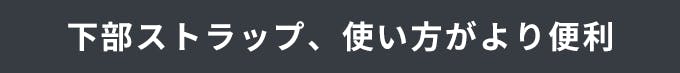 バッグの底部に設置されたストラップは開閉可能で、傘や撮影用三脚、自転車のロックなどを簡単に固定できます。