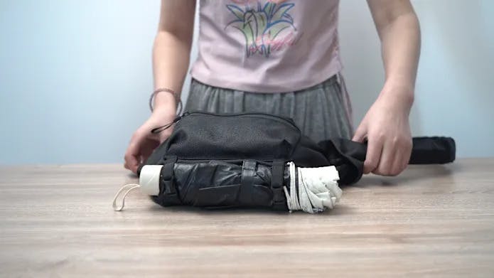 水袋の使用も簡単で、水を入れてしっかりと閉じて、ホースを取り付けてからバッグに収納するだけで準備完了です。