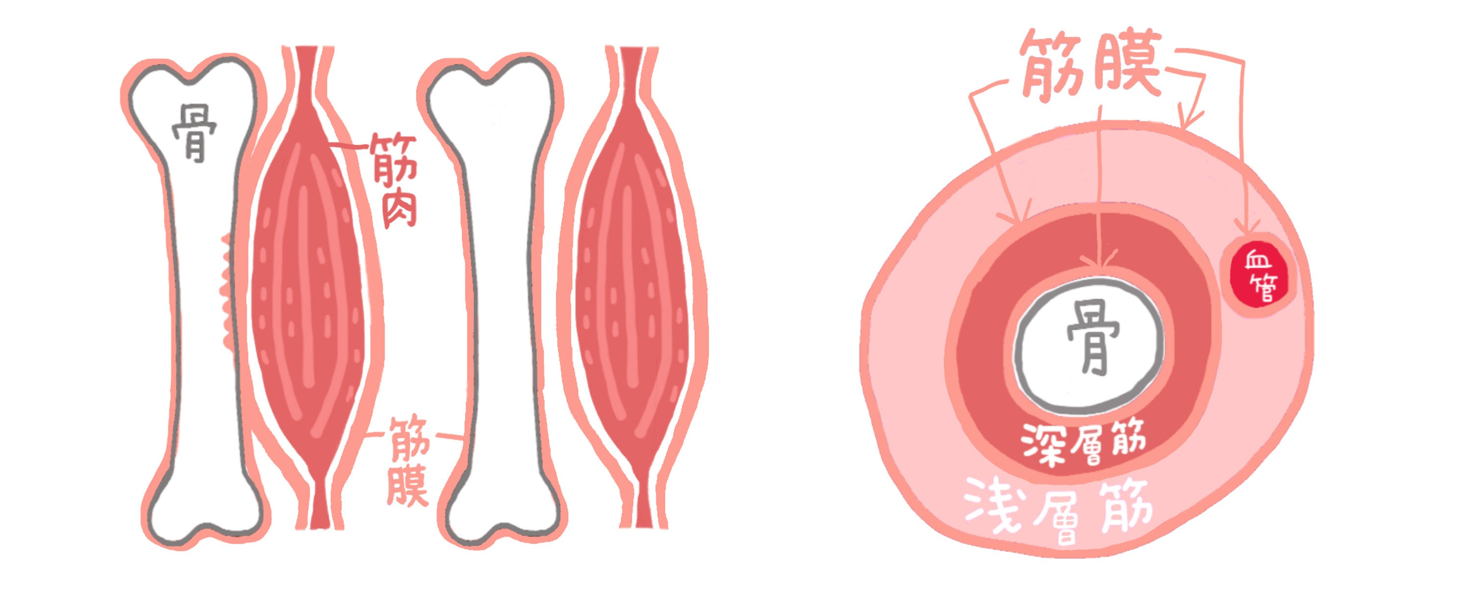 筋膜とは筋肉を包む膜のことで、ウェットスーツのように体全体に張り巡らされています。