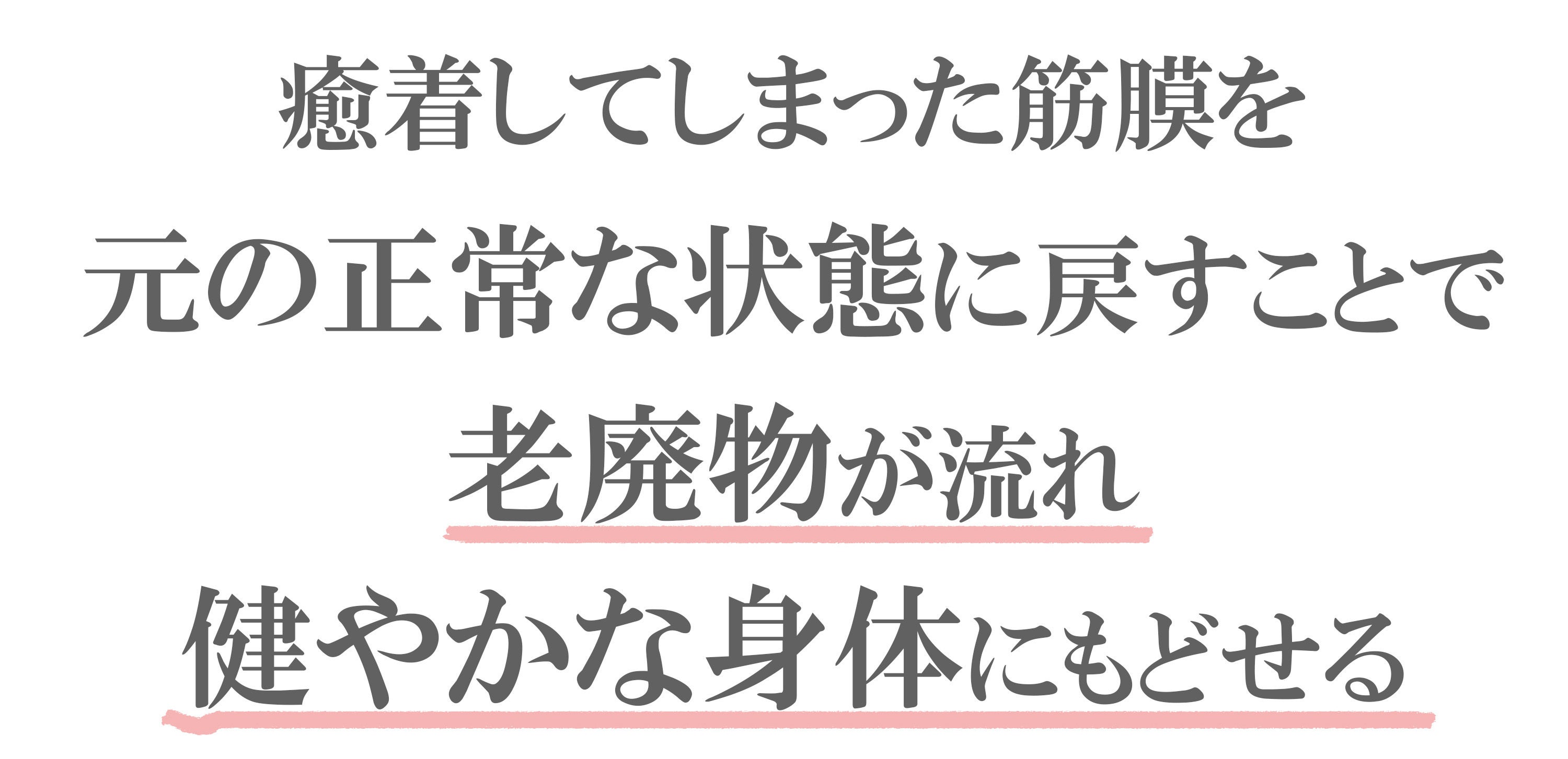 筋膜が癒着し、筋肉が動けない状態になると血行不良が起こり、栄養が全身にいき渡らなくなります。 また、老廃物が流れなくなってしまうのです。