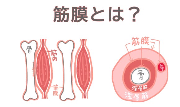 筋膜とは筋肉を包む膜のことで、ウェットスーツのように体全体に張り巡らされています。
