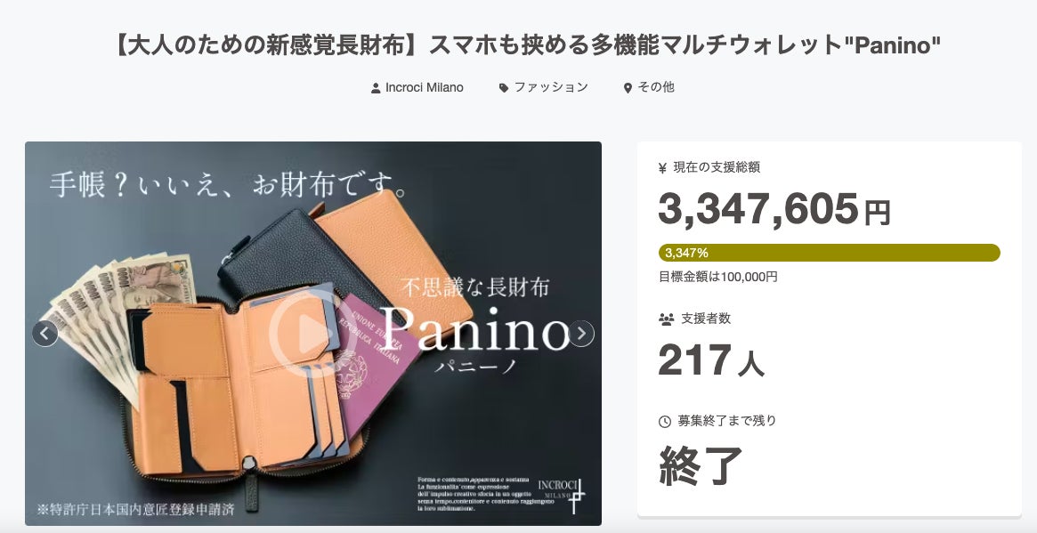 "Panino(パニーノ)"は、以前Makuake、CAMPFIREにてプロジェクトを実施、見たこともないような形状のプロジェクトであるにも関わらず、第一弾は1,300,000円以上、第二弾は3000000円以上、そして第三弾は5,000,000円以上のご支援をいただきました。