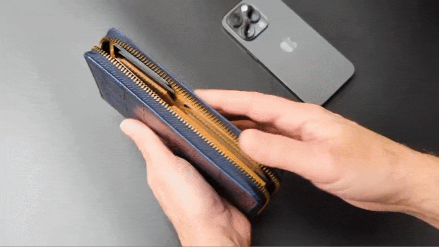 A. 現在スマートフォンの中でも最大級であると思われる iPhone 15、Google Pixel 7Proでの収納確認は取れております。裸の状態、または薄いカバーを付けての確認となりますので、お使いのカバーによっては入らないこともございます。また、カードやお札などの量や、お財布の状態(*)によっても変わりますので、中身の容量と相談をしながらお使いください。また、無理にジッパーを閉めることは、故障に繋がりますのでおやめください。*初めは革がキュッと締まっているため、きつくなりがちです。しばらく使って革を馴染ませながらお使いください。