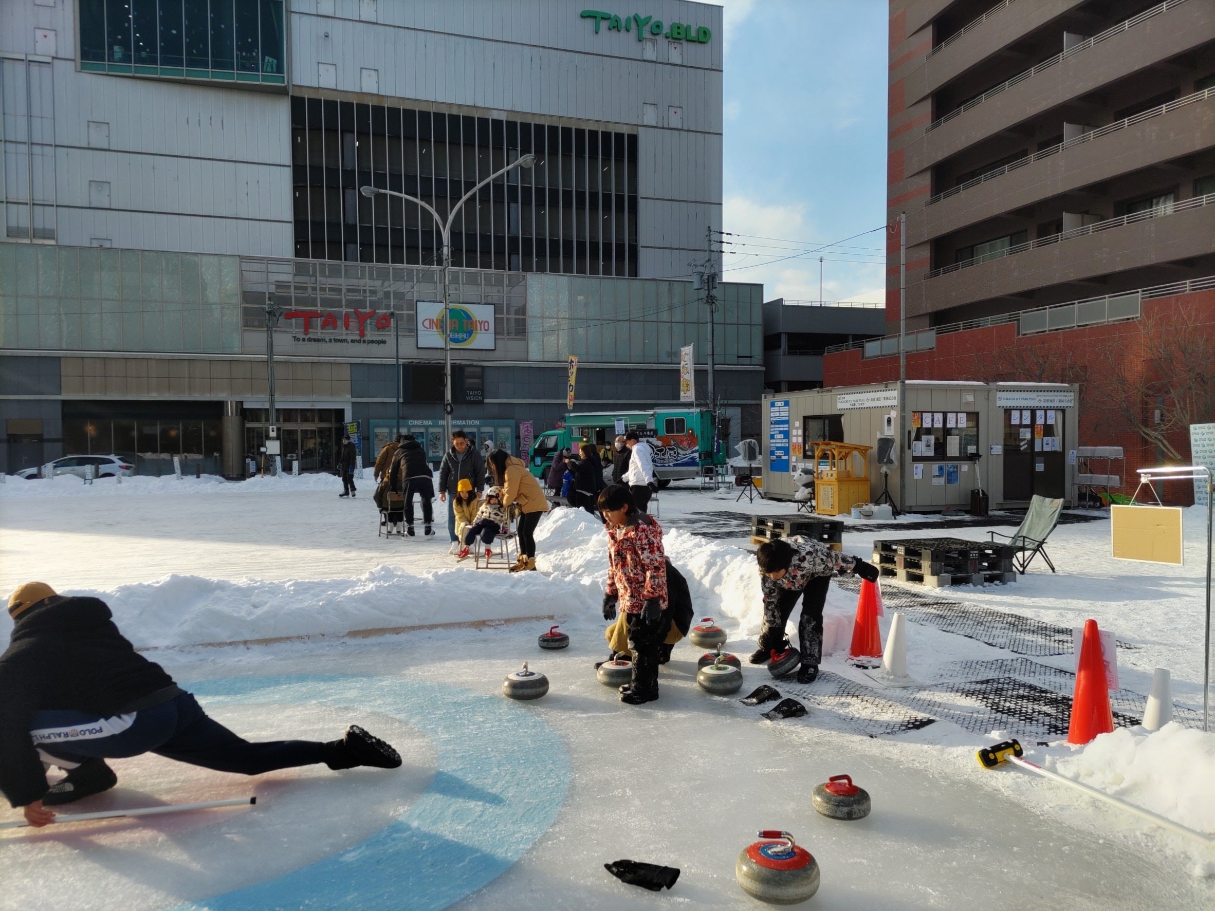 をテーマに、帯広駅前の広場でスケートやカーリングができる屋外のアイスリンク施設。