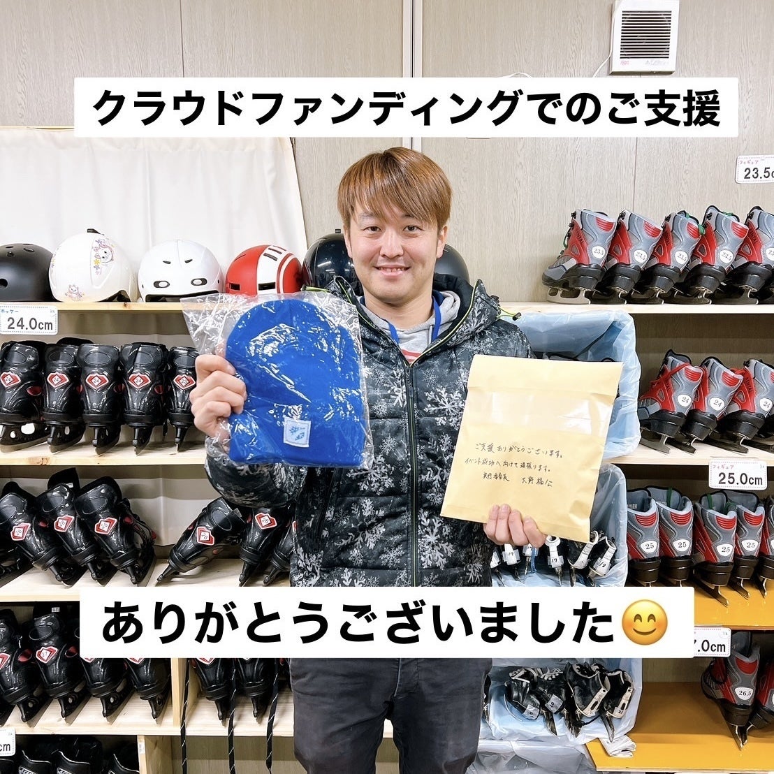 2025/01/04 01:262024年12月23日でクラウドファンディングの支援期間が終了しました。77人のみなさまから50万6,500円のご支援をいただき、トカチアイスパークプラスを12月27日17時よりオープンすることができました。心よりお礼申し上げます。沢山のお客様で賑わうリンクオープンから8日間が経ちました。年末年始は実行委員やボランティアの少数で切り盛りしており、営業中はトイレにも行けない状態ですが、毎日たくさんのお客様にお越しいただき、スケートやカーリングを楽しんでいただけて、とても嬉しく思っております。お待たせしました!大変遅くなりましたが、リターンで「オリジナルグッズ」「オリジナル羊羹」を選択いただいたみなさまに、心を込めて発送いたしました。発送が遅れたお詫びとして、実行委員長の大野がメッセージを書かせていただきました。丁寧にメッセージを書いていますメッセージ付きのシールも、ご覧いただければ幸いです。こだわりのシールリターンで「とにかく応援!会場で支援者様のお名前掲示」を選択いただいたみなさまのお名前を、会場のプレハブ内に掲示しています。プレハブ内の掲示の様子リターンで「ただただ応援!感謝の気持ちをメールでお届け」を選択いただいたみなさま、もう少しお時間ください。たくさんのみなさまにご支援いただき、感謝の気持ちでいっぱいです。イベント成功に向けて頑張ります! もっと見る