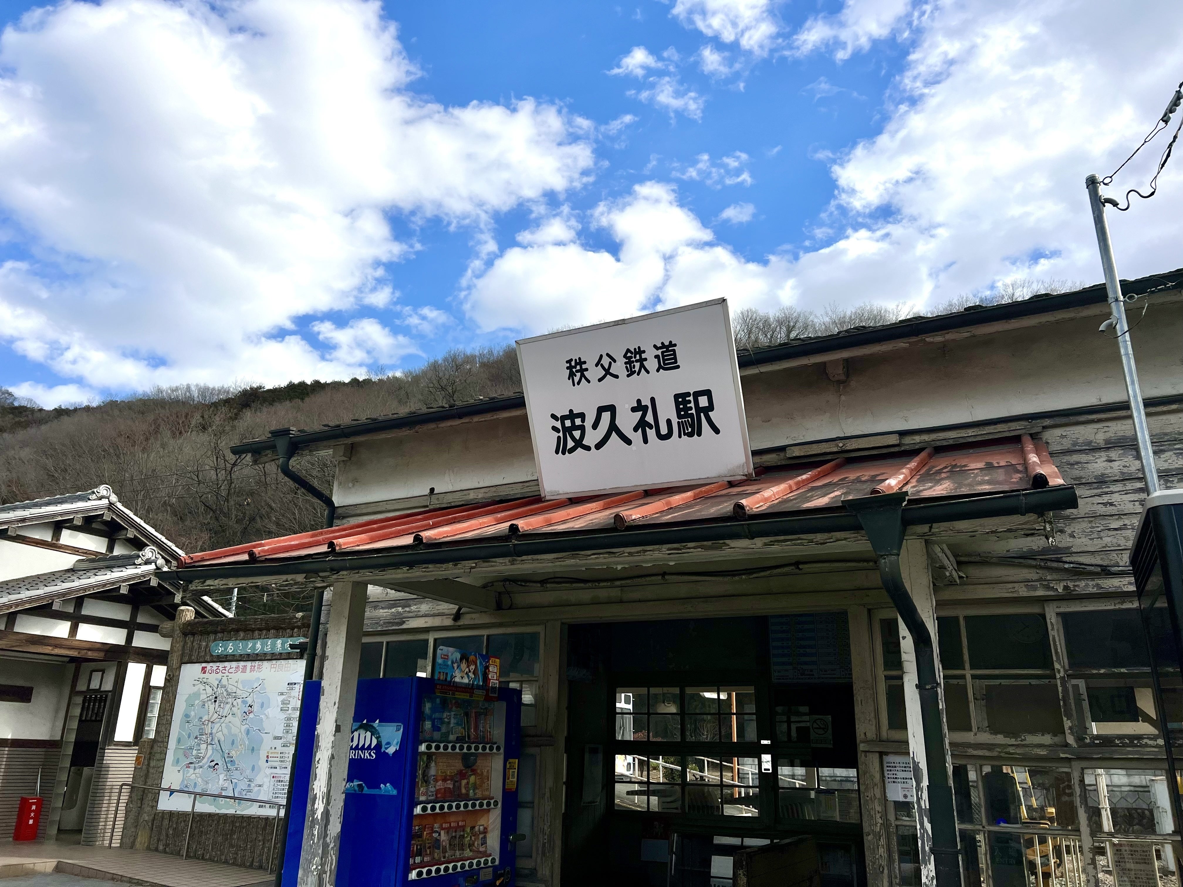 波久礼から金崎(皆野町)までの約11キロの区間は、断崖と荒川に挟まれた難所でしたが、8年の歳月をかけ、1911年(明治44年)9月14日に開通。これにより、長瀞(当時の野上町)には都市部からの観光客が増え、観光地として発展しました。また、熊谷~秩父間が鉄道で結ばれたことで、秩父銘仙の販路拡大や木材輸送の効率化が進み、沿線の産業と人々の暮らしが大きく変わった重要な駅です。