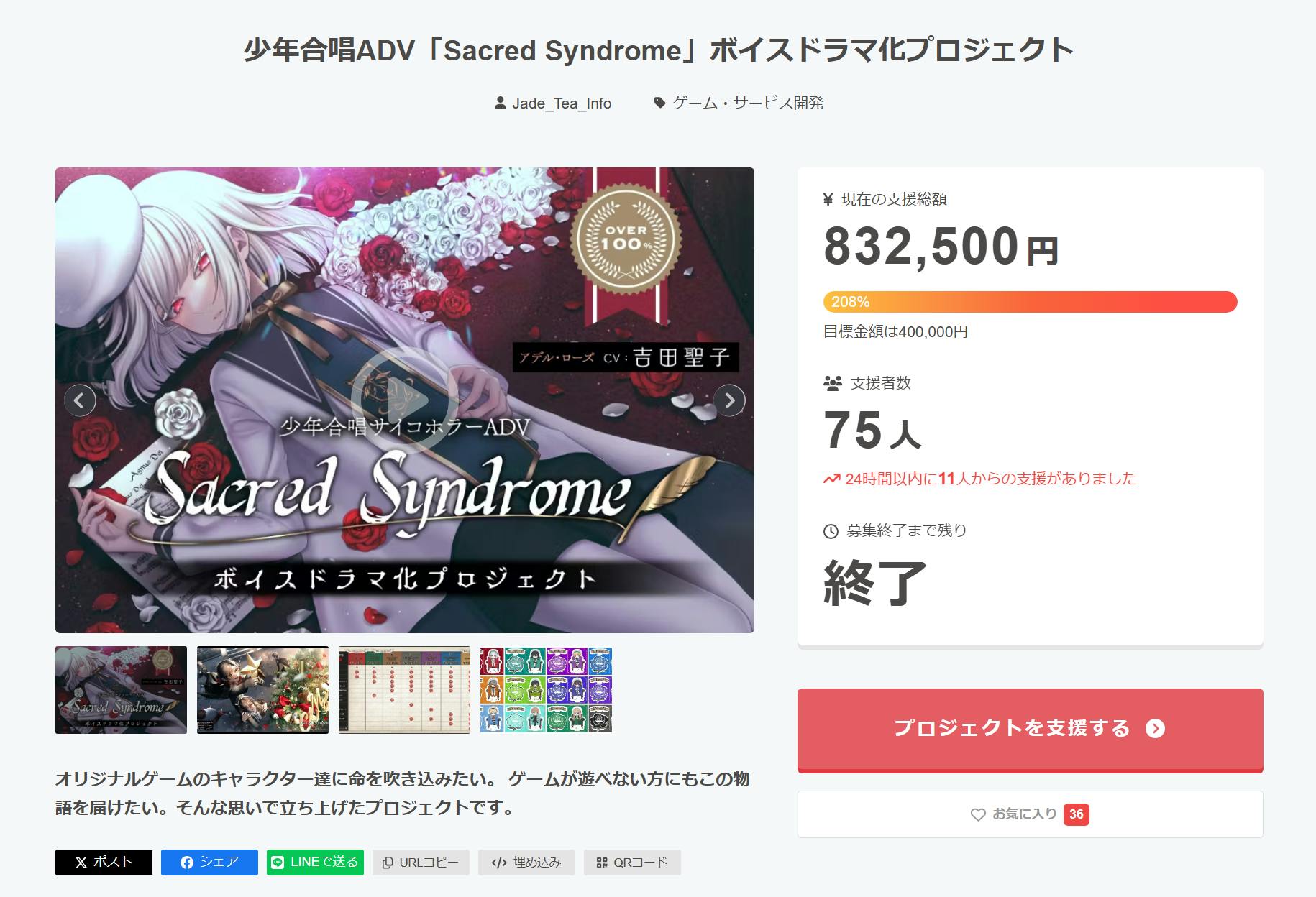 引き続き、Sacred Syndromeボイスドラマ化プロジェクトをどうぞ宜しくお願い致します。