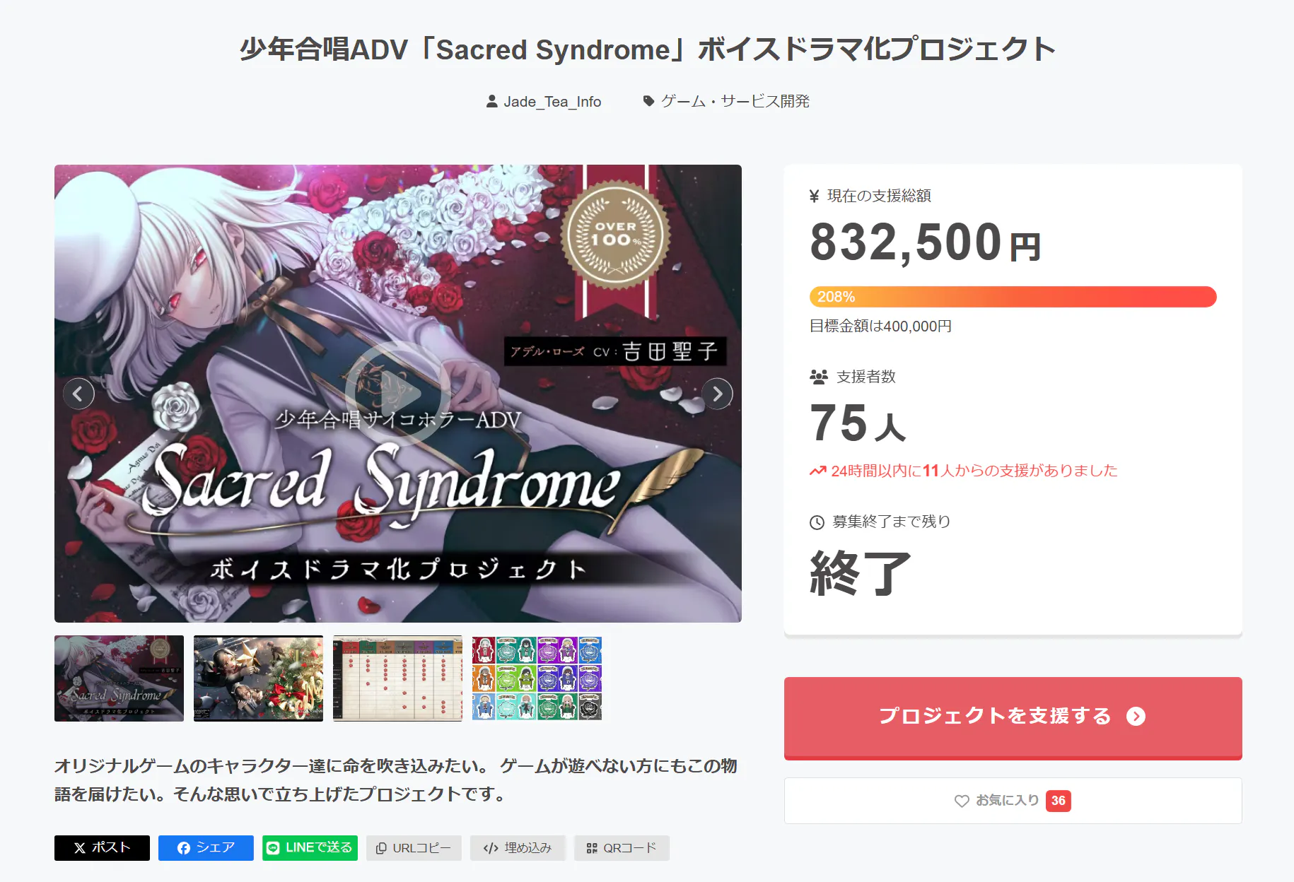 それでもここまでのご支援を得ることが出来たのは、ひとえにSacred Syndromeや、キャストの皆様、その他制作陣を信じて応援してくださった方々のお陰です。