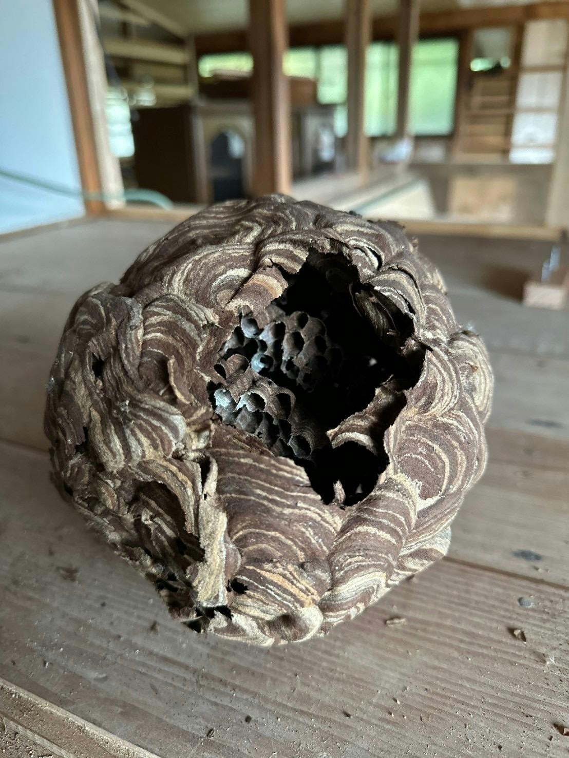 屋根裏に登れば、沢山の蜂の巣発見。