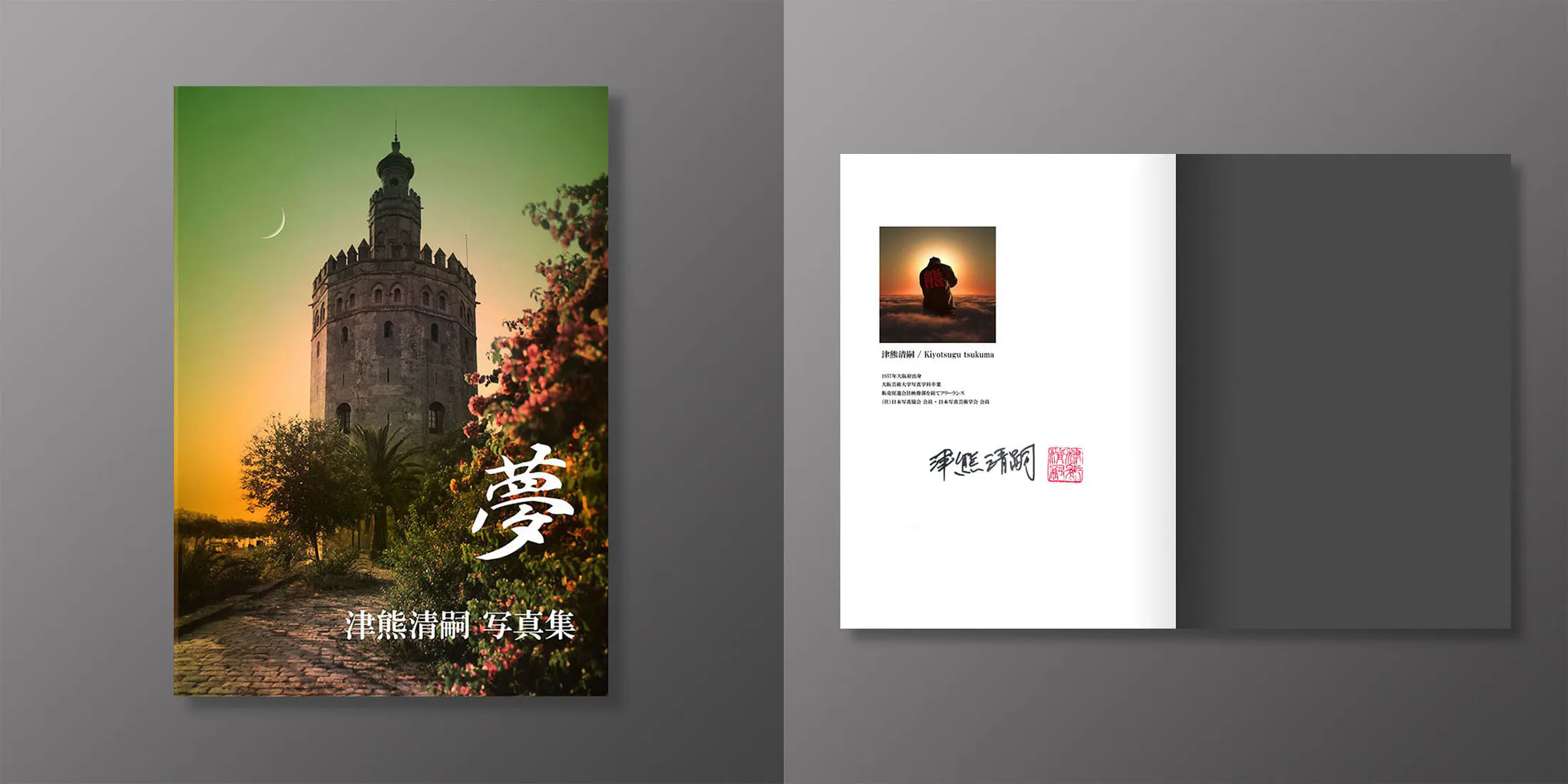 津熊清嗣 写真集「夢」に直筆のサインと落款を押してお送りいたします。普通郵便でお届け先ご住所のポストに投函の形となります。