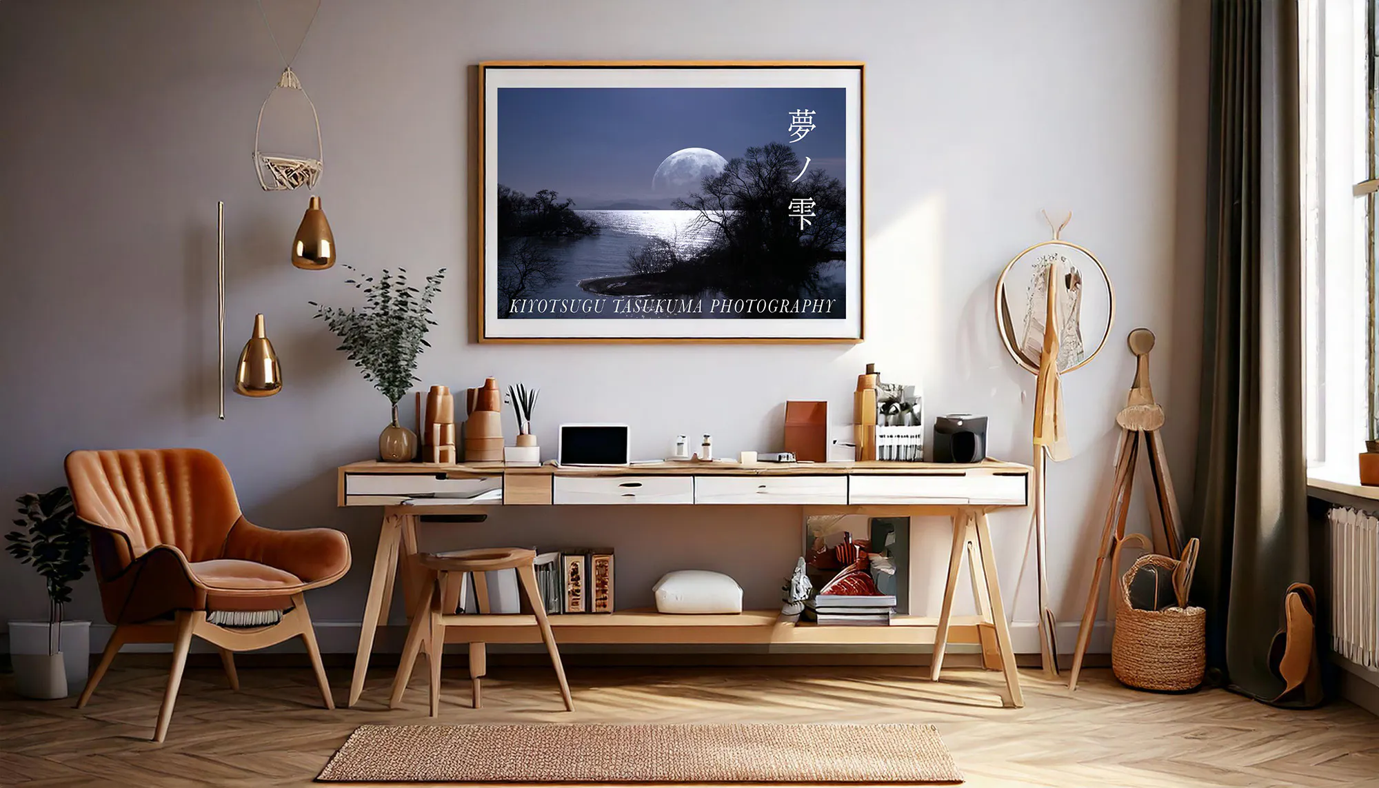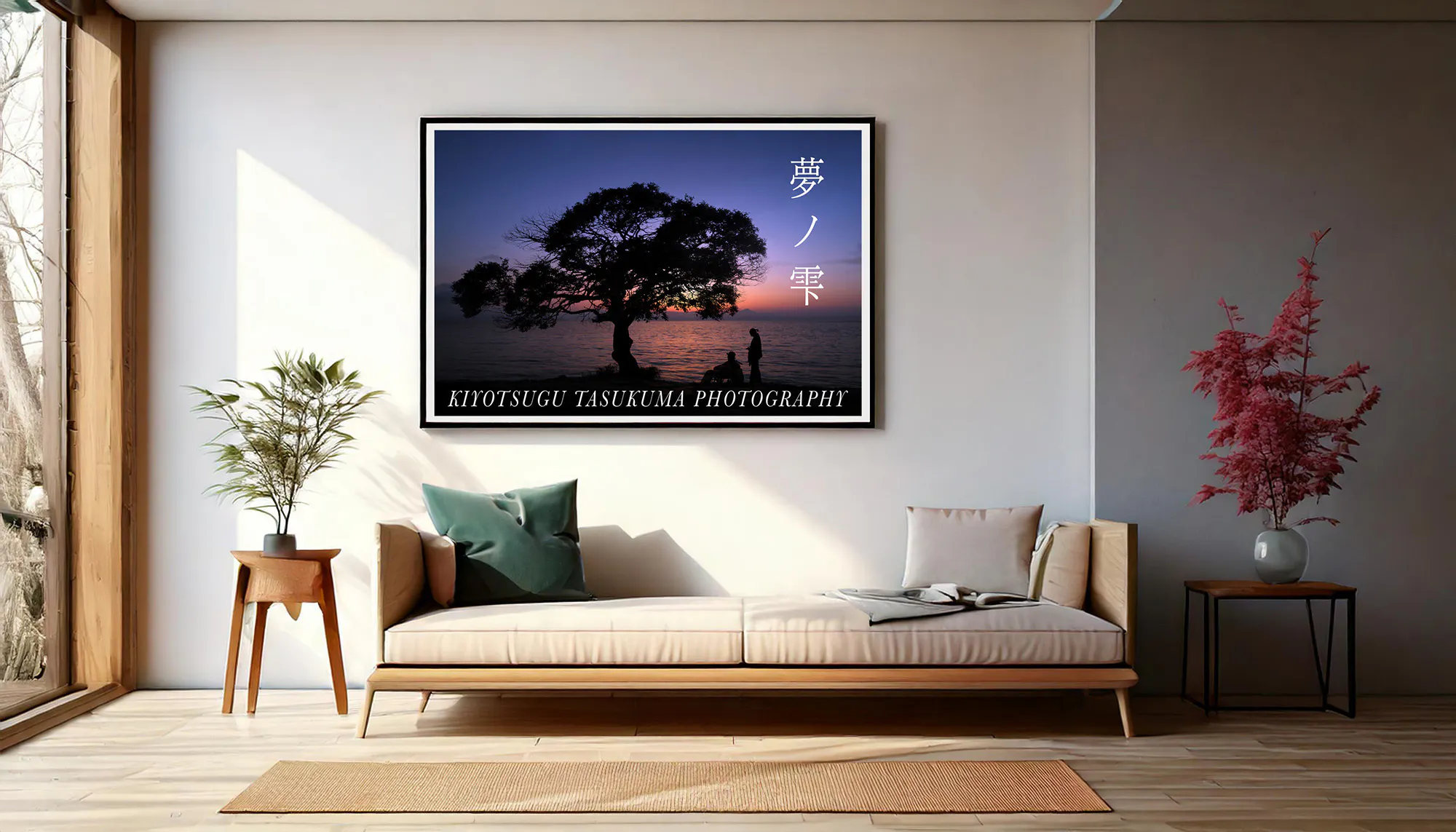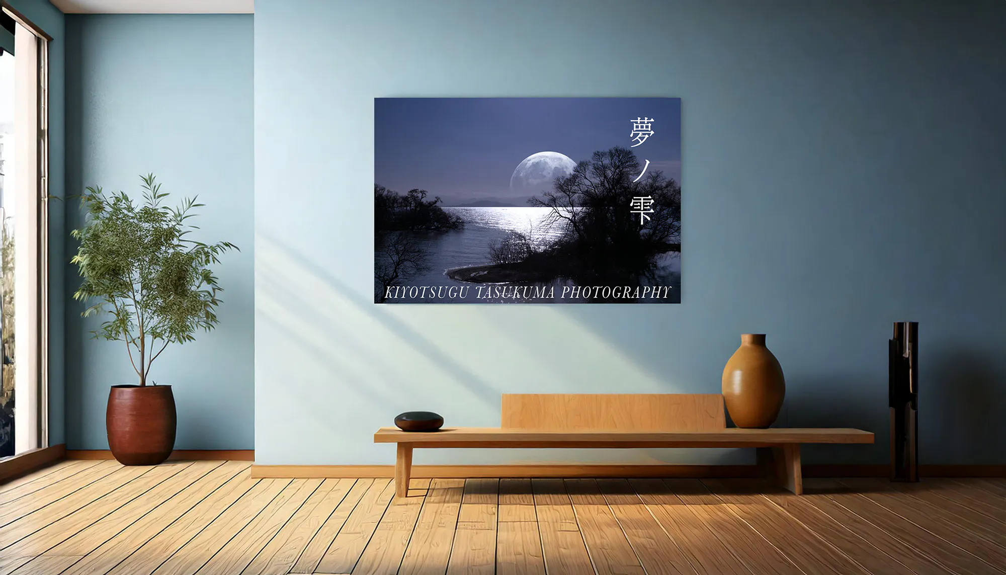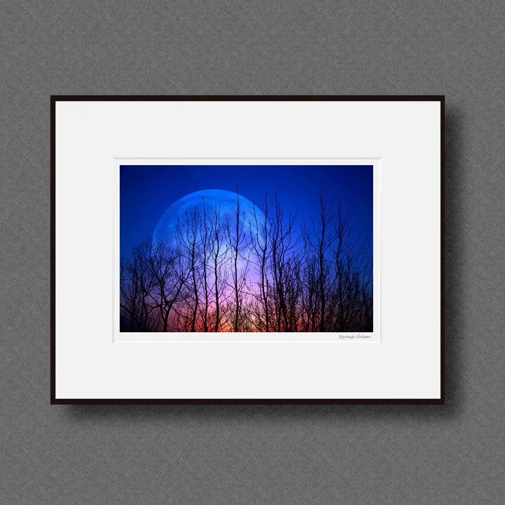 プリントから額装まで心込め最高の仕上がりになるよう制作し、額縁サイズ(三三)606×455mm / 作品は顔料インクでA3ノビサイズにプリントし、幻想的な夢の景色を穏やかに散策いただけるように展示する予定です。