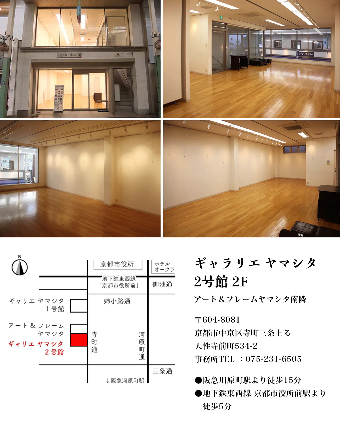 写真展を行うギャリエ・ヤマシタ2号館は、京都の寺町通りのアートギャラリーです。京都のアートシーンは熱く、特に寺町通りは京都御所の南から京都市役所までは「寺町美術通り」とも呼ばれ、ギャラリーやアンティークショップも多く点在し、アート散策するにはとても魅力的なエリアです。