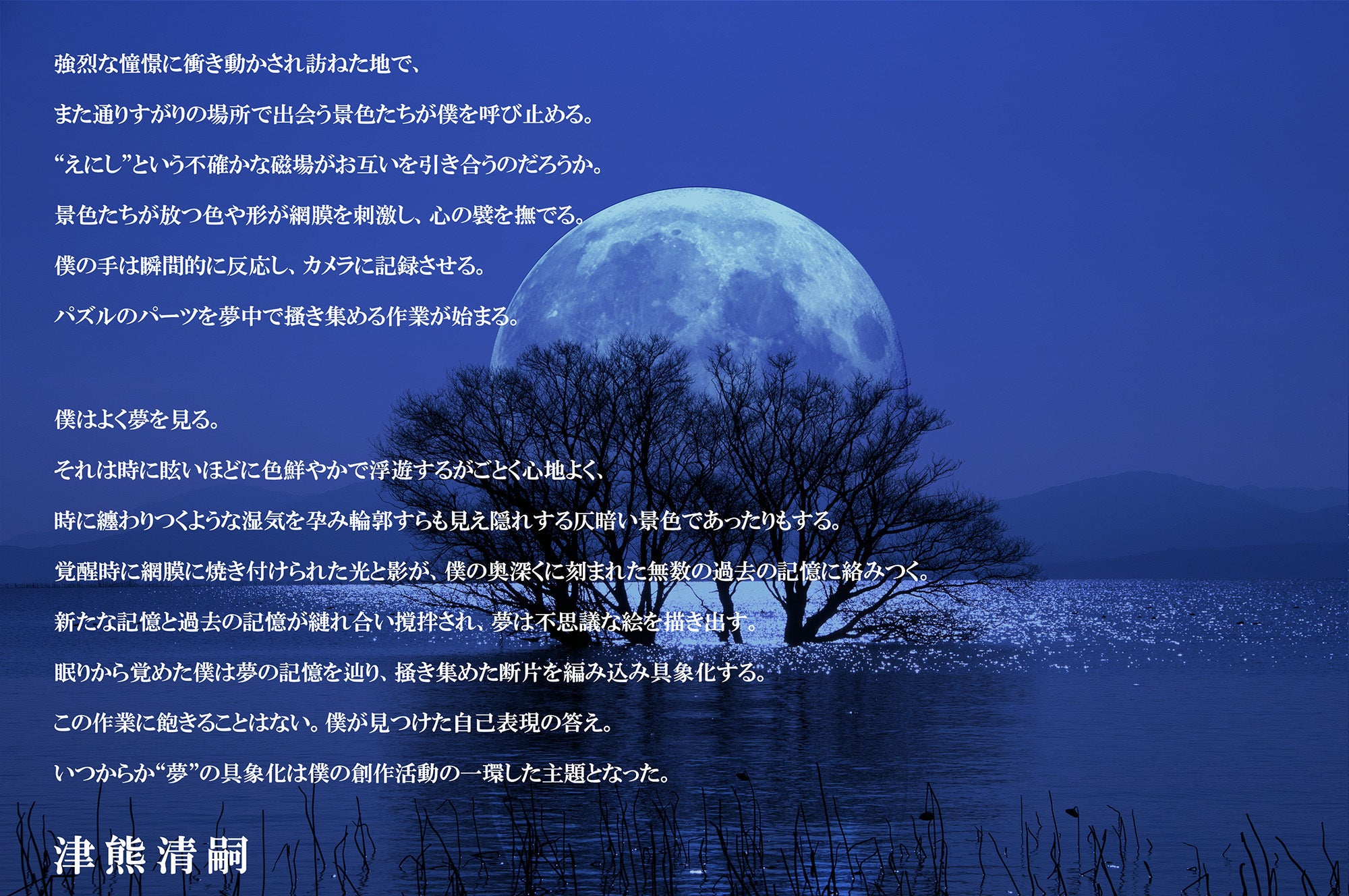 来年2025年4月14日(月)〜4月20日(日)の桜の季節におきまして、京都のギャリエヤマシタ2号館2階画廊にて、津熊清嗣 癒しの世界「夢ノ雫」を開催致します。私が紡いだ幻想的な景色に触れていただき、お疲れを癒す一助になれば幸いです。ご来場を心よりお待ちしております。