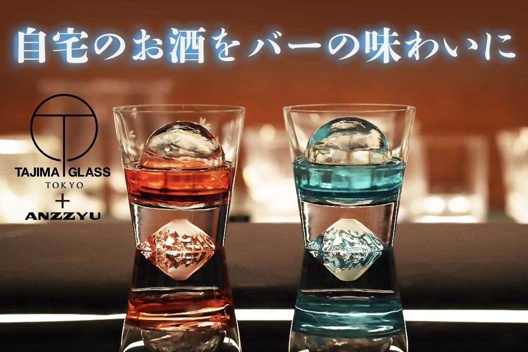 富士山を眺めながら、おいしいお酒を嗜みたい。そんな想いを実現するために、お酒の味をより引き立ててくれる高品質の透明氷(ANZZYU)と富士山ロックグラス(TAJIMA GLASS)が、ついに初のコラボレーション!お酒を注いだ時に浮かび上がる富士山の絶景はひときわ美しく、美味しさと美しさの融合はまさに至極の瞬間です。