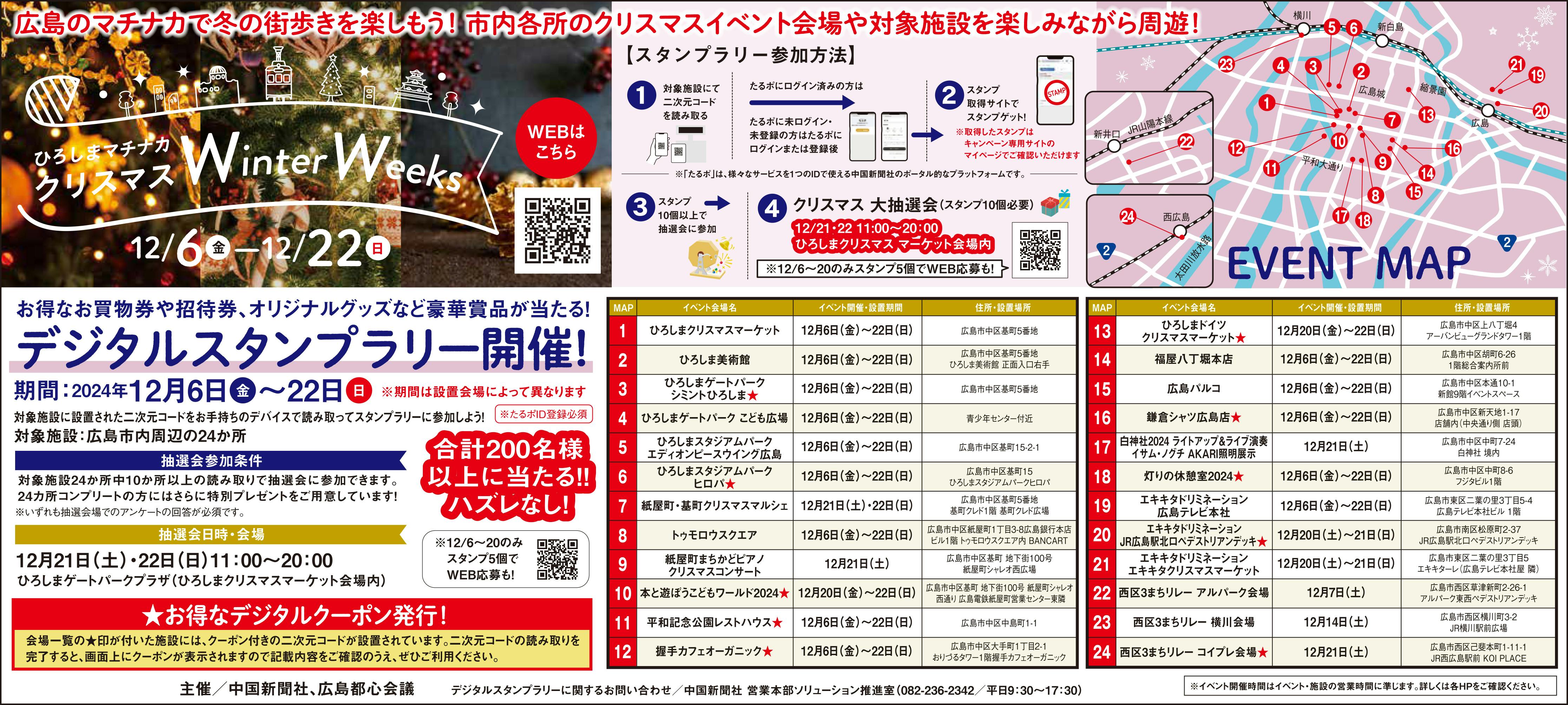 2024.12.6~22の間、広島市内周辺の24か所で行われるクリスマスイベントデジタルスタンプラリー開催に伴うものです。