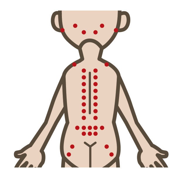 ツボとは、東洋医学の「気」の概念に基づく経絡(けいらく)上の経穴(けいけつ)で、全身に点在しています。