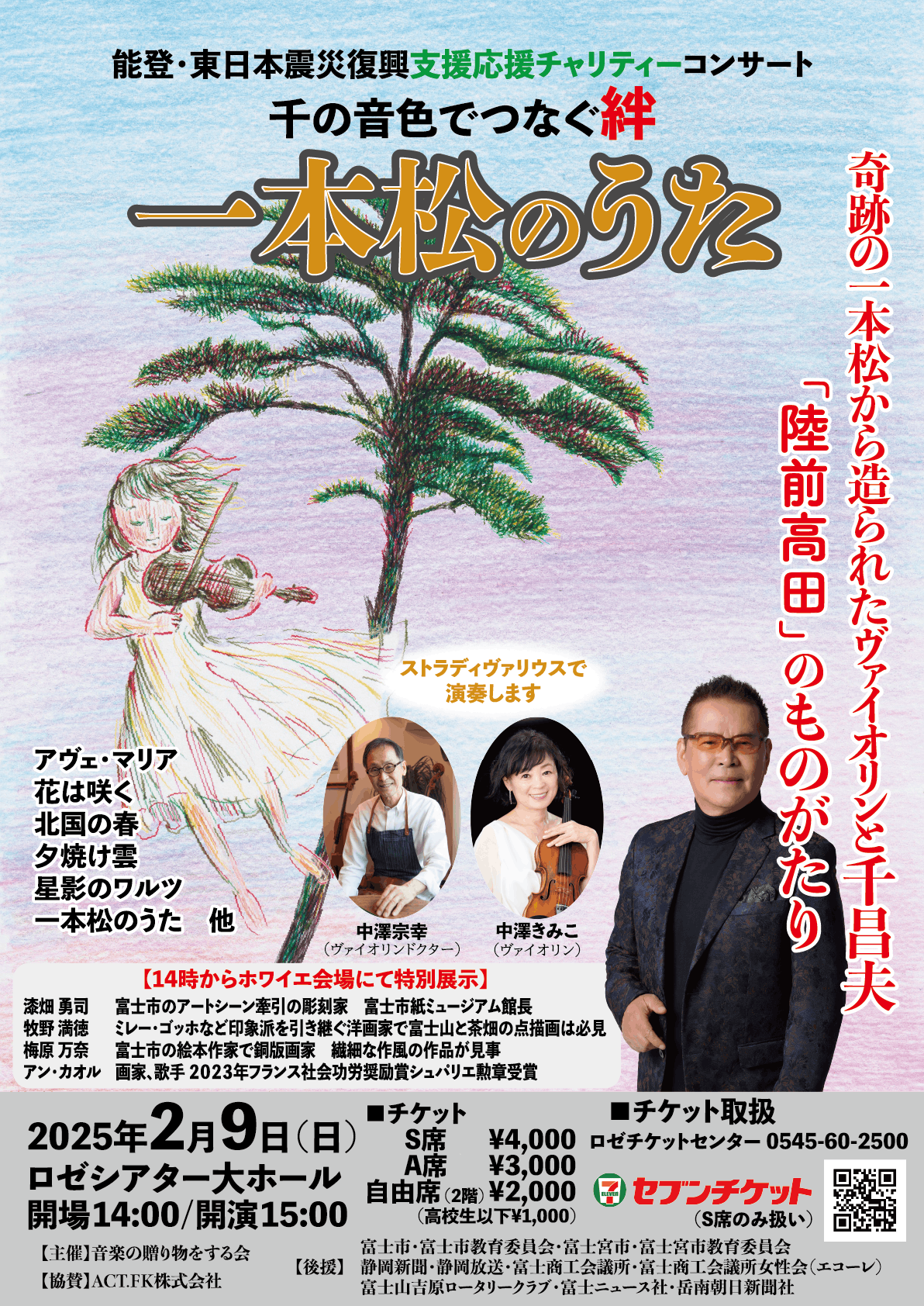 ■2025年2月9日 静岡県富士市文化会館ロゼシアター大ホール コンサート「一本松のうた」 S席1枚