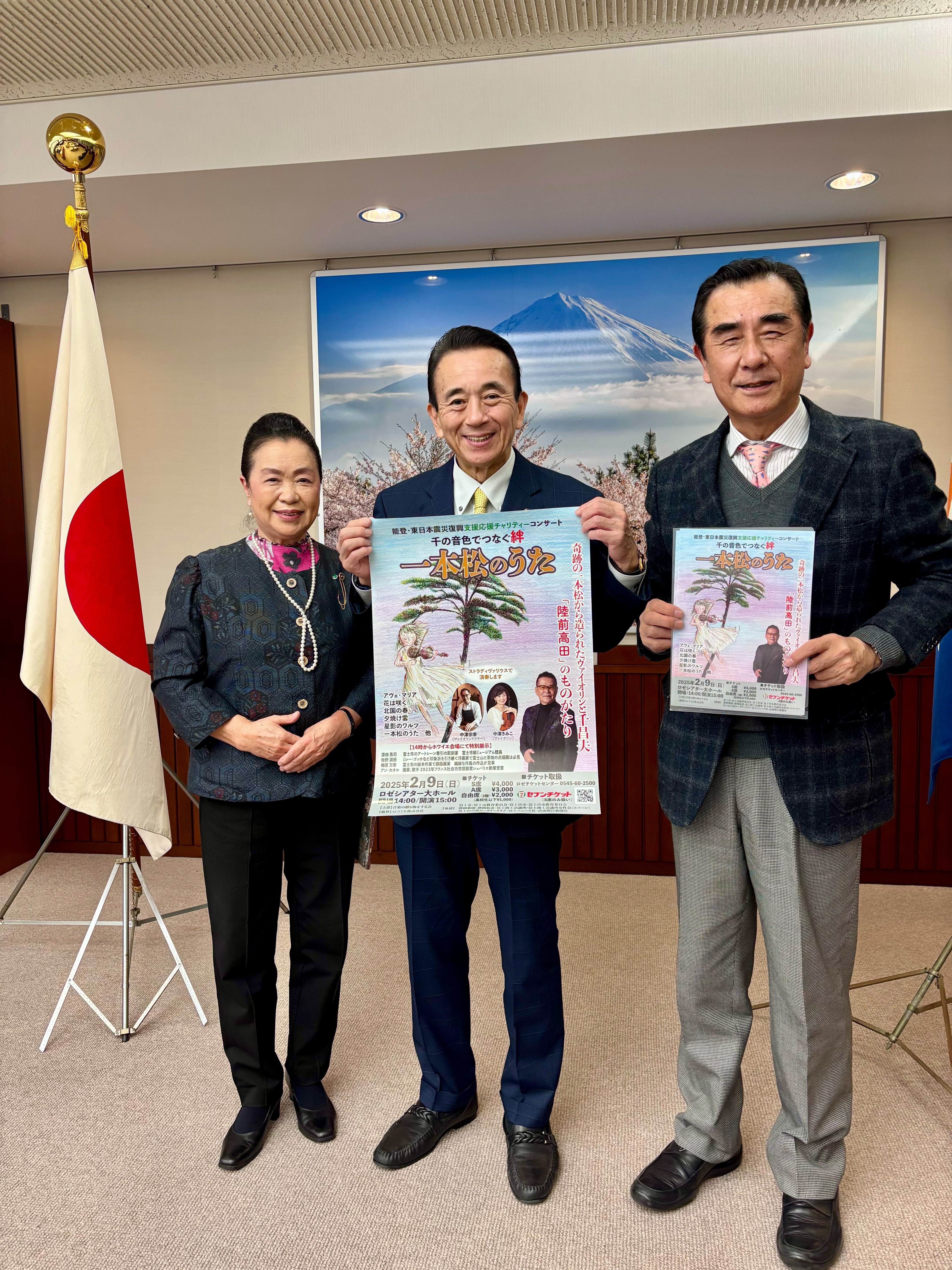 2024/12/25 20:46静岡県知事、鈴木康友さんに「一本松のうた」のイベント開催にあたり、ご挨拶をして参りました!震災復興とイベントの成功へ大きな応援の声を頂きました!静岡県庁にポスターも掲示して頂くことになりました!是非ご覧下さい! もっと見る