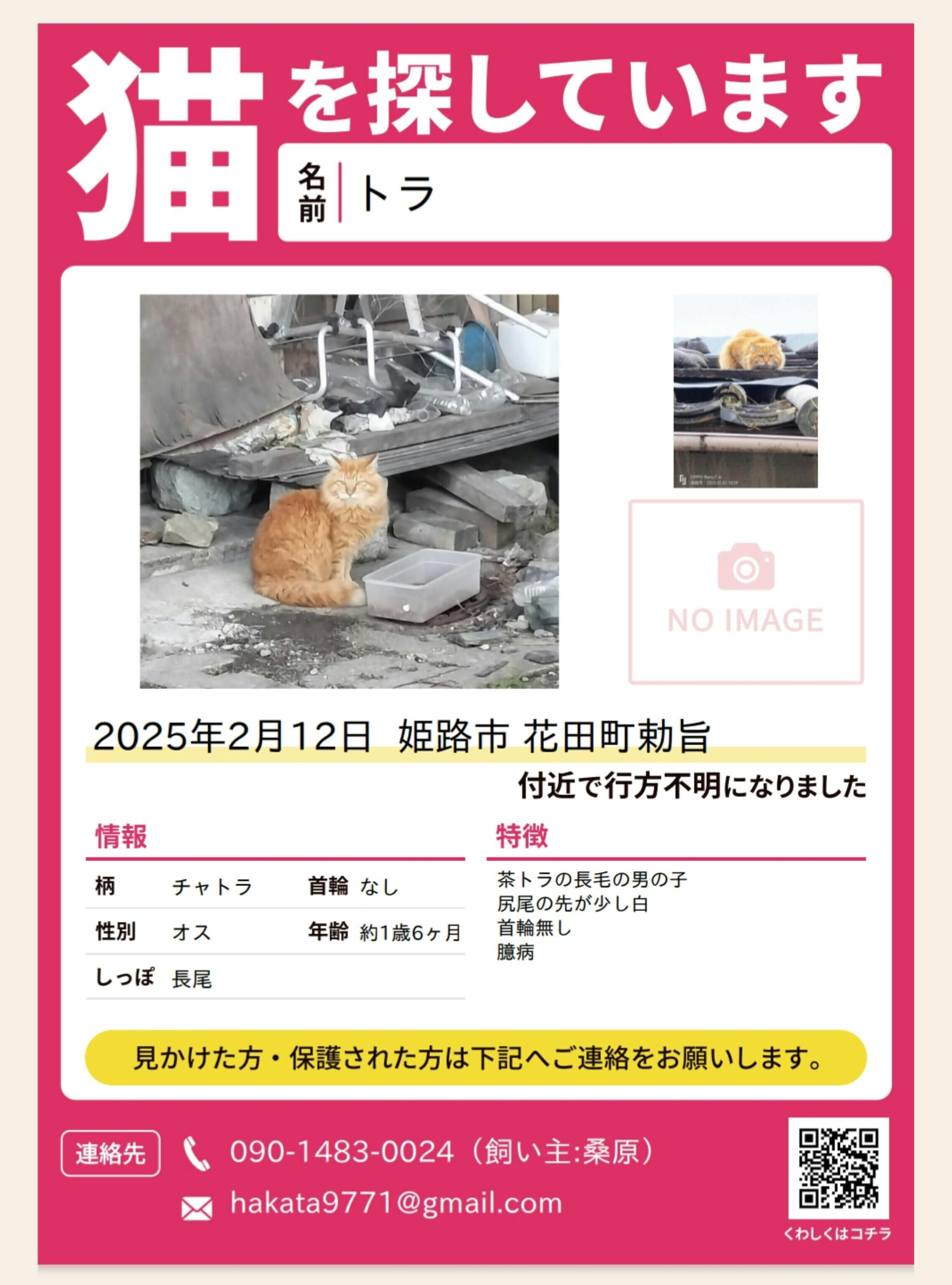 2025/02/28 16:39病院の玄関前から逃走した地域猫のトラの君が15日ぶりに発見しました。今迄、ペット探偵さんに6日間で29万万円の支払いにチラシポスティングなどで61000円の支払いに捕獲器の購入など合わせて350000万円の出費でしたが、まだ、捕獲はできてません。根っからの野良猫ですからプロの捕獲専門の会社に頼むつもりですが資金も底をついています。どうか皆様方のお力でトラ君が元暮らしていた親子兄弟の場所に帰す事にご協力をお願いいたします。 もっと見る