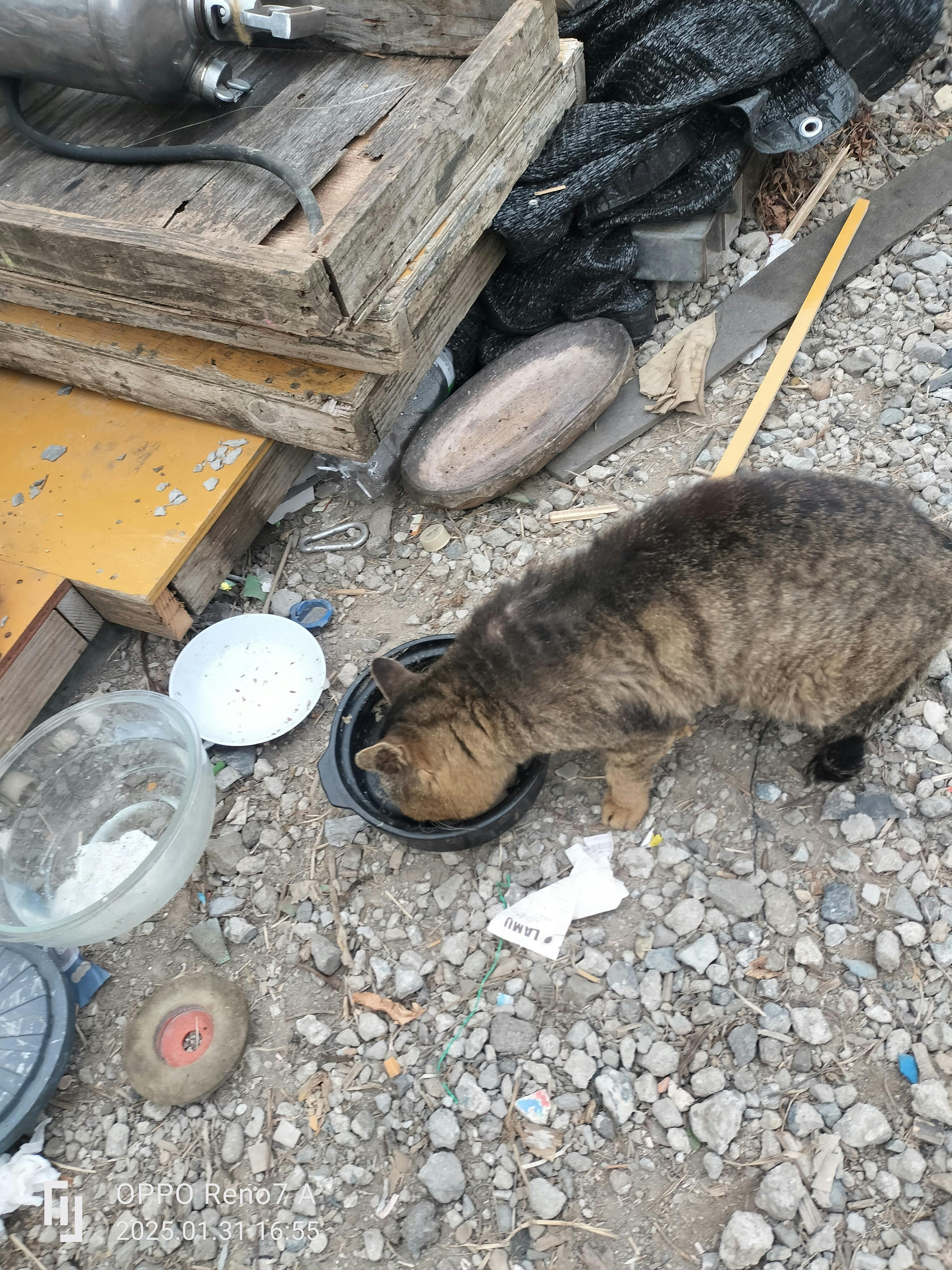 朝昼晩と自宅の玄関に置いて有るカリカリフードとパウチを食べに来る