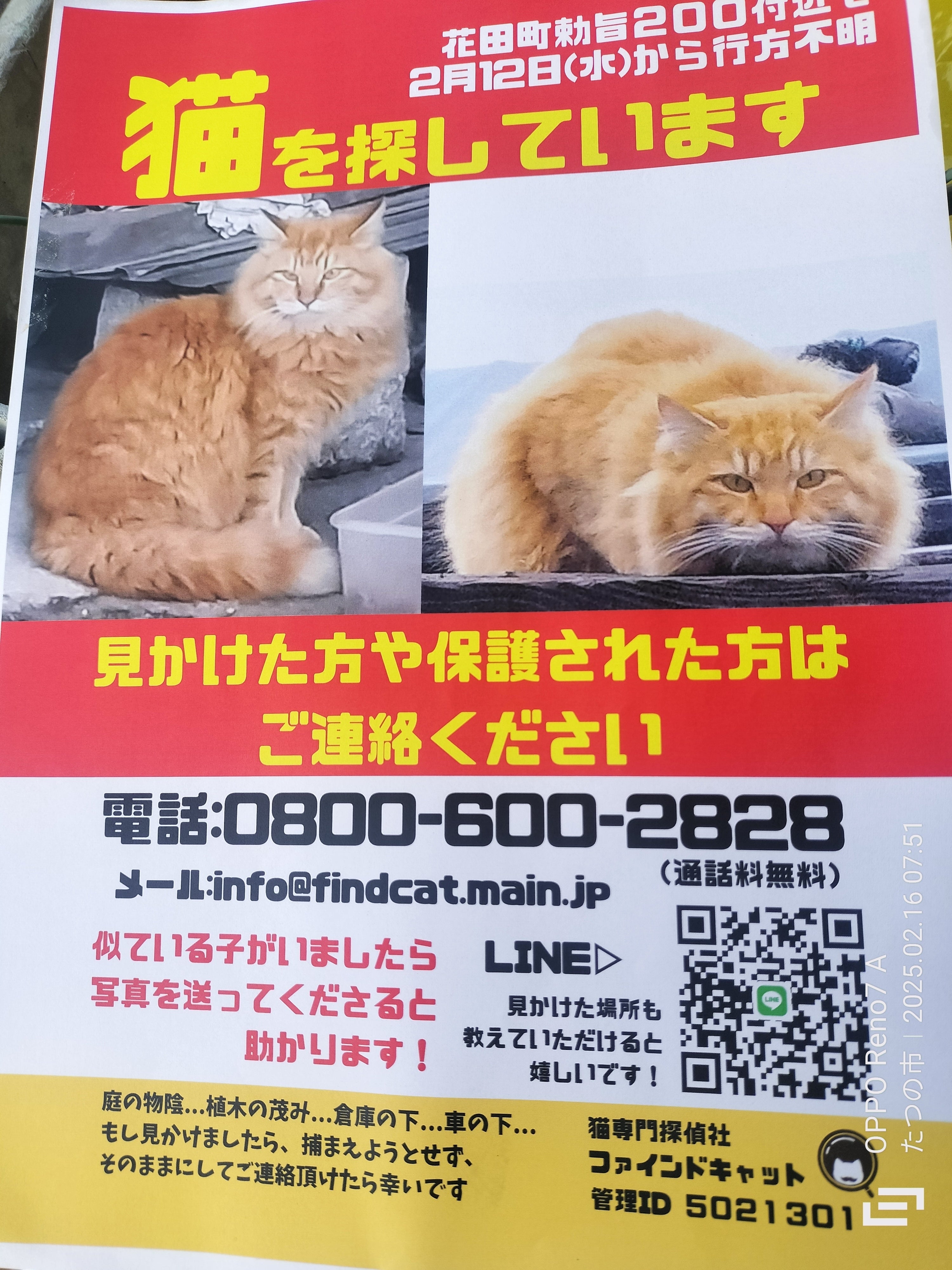 2月16日23時からペット探偵さんと打ち合わせして明け方まで探します。