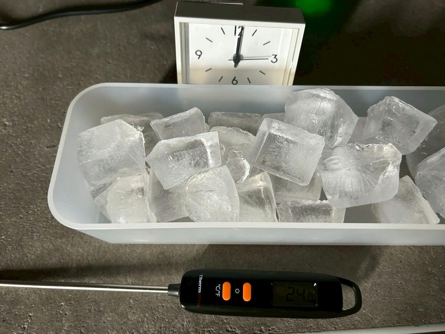 溶けた水を抜いたらこんな感じで普通の氷でした。