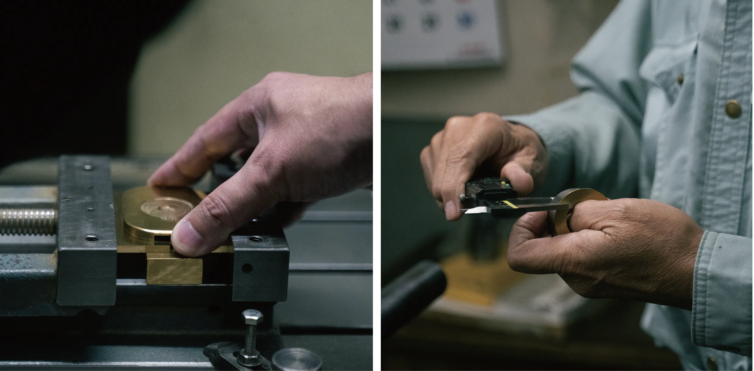 また、あえて表面加工をせず、真鍮無垢で仕上げているため、加工の技術が目に見えてきます。