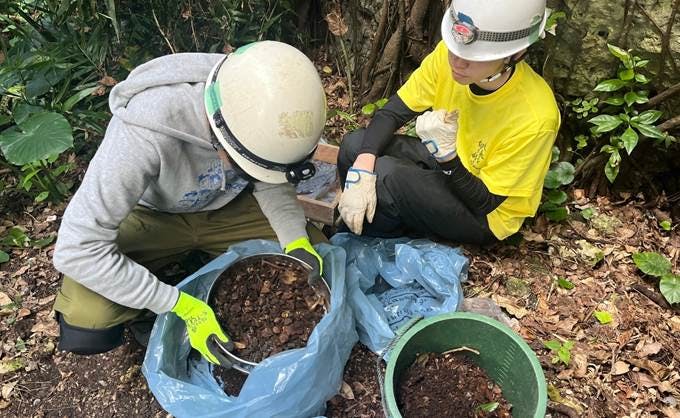 戦後80年間で堆積したごみを回収したり、岩を運んだりしながら、戦争当時の地表まで地面を掘り下げるところから活動がスタートします。