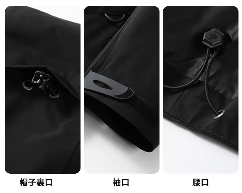 帽子・袖口・裾は冷たい空気が入らないよう締め機能が施されております。