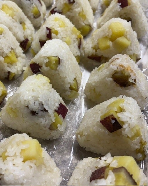 いぶきヴィレッジ産のお米とさつまいもで作った【地産地消:さつまいもごはんのおにぎり】を食べていただきました!