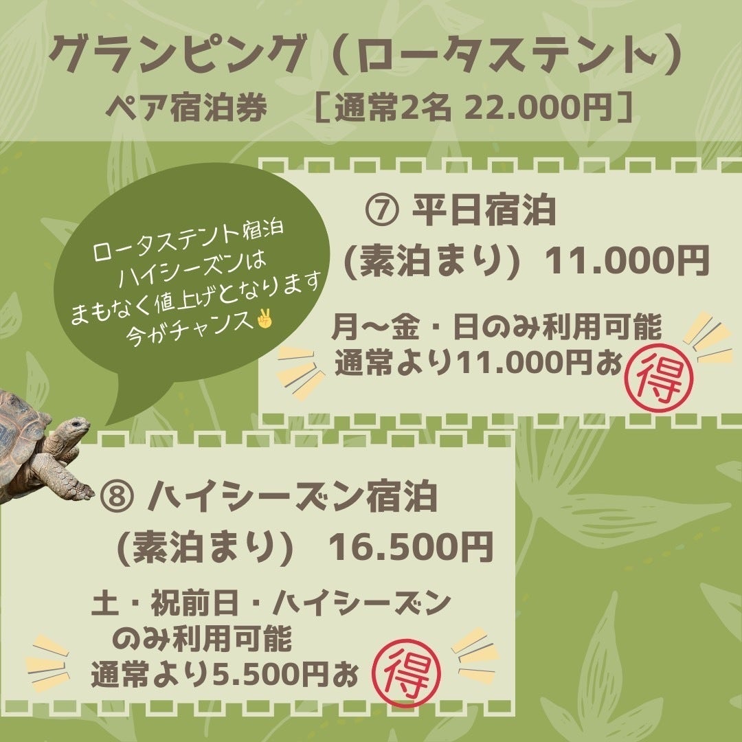 グランピング ロータステント(ペア素泊まり宿泊券)