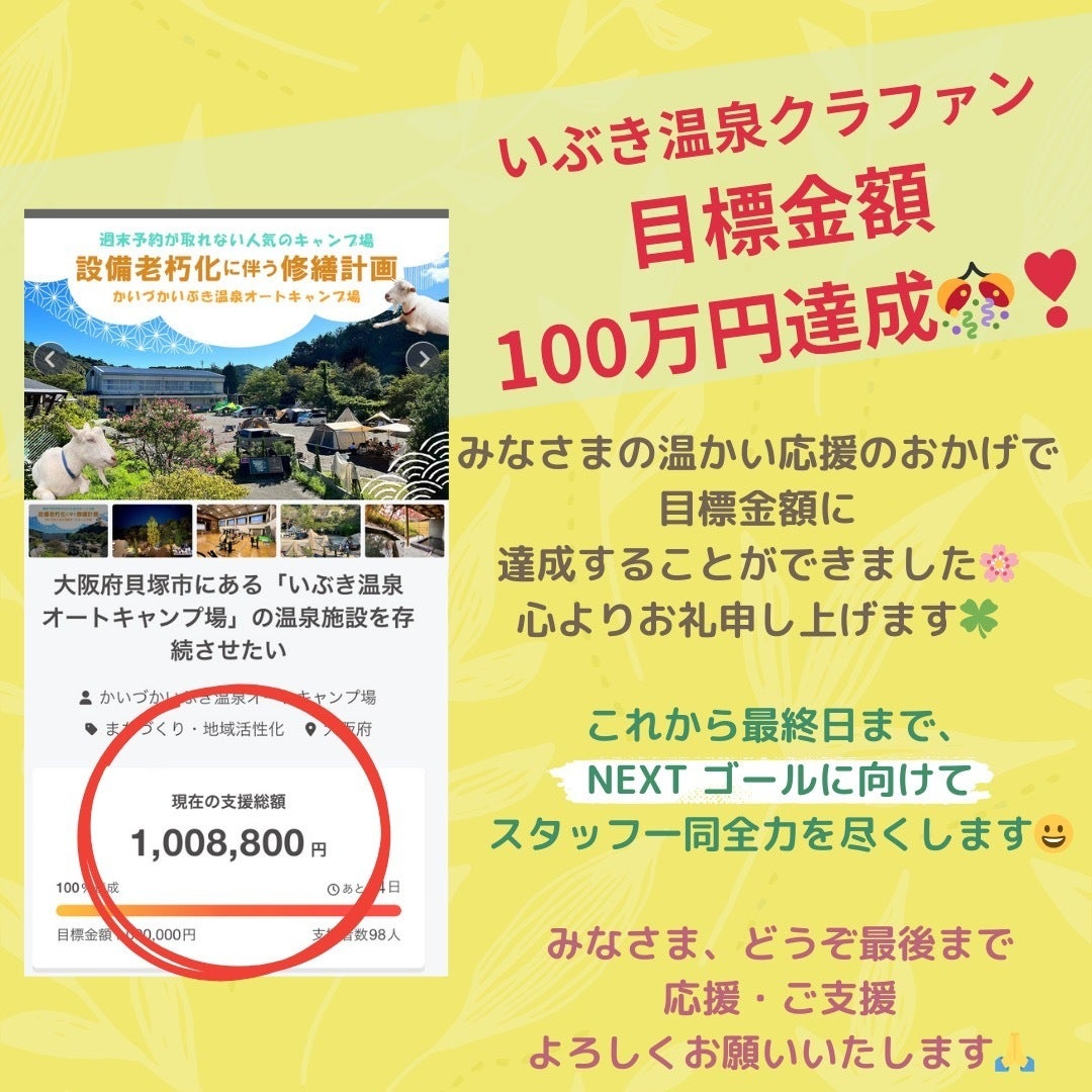 いぶき温泉を愛してくださっているみなさまの温かいお気持ちが集まり目標に到達できたこと、感謝の気持ちでいっぱいです。