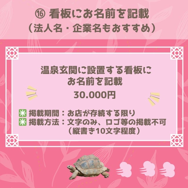 支援者さまの想いを看板のお名前に残すことで、最後までいぶき温泉を見守ってくださっていることを、形を持って顕させていただきます。