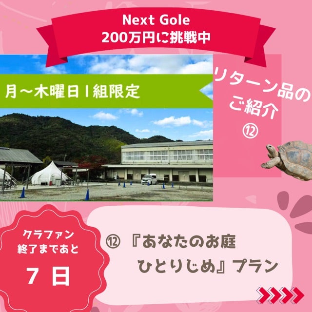 【クラファン終了まで残り7日⭐︎】今日ご紹介のリターン品《あなたのお庭ひとりじめプラン》のご案内です♪こちらは平日限定プランとなりますが、なんとこれまでのいぶき温泉オートキャンプの定休日返上‼︎月曜〜木曜でのご予約OK‼︎しかもサイト2区画利用いただけます。おまけに、貸切家族風呂は、翌早朝6時から入浴いただけるんですよ♡お友達とのグループで盛り上がりたい方にご家族の中に子供さんがいるので人が多い時に行くのはちょっと…とキャンプが出来ずにいる方にそんな、1組限定プランをご用意いたしました。利用サイトのことなどご相談もお気軽にご連絡くださいませ⭐︎こんなプラン欲しかったんですー桜の時期に、また誕生日などの記念日に、いろんな使い方がありますのでぜひいい形でご利用いただけたらと思います♪♪残り数日となっております、クラウドファンデングもう一度リターン見てみてくださいね♡https://camp-fire.jp/projects/805408/view
