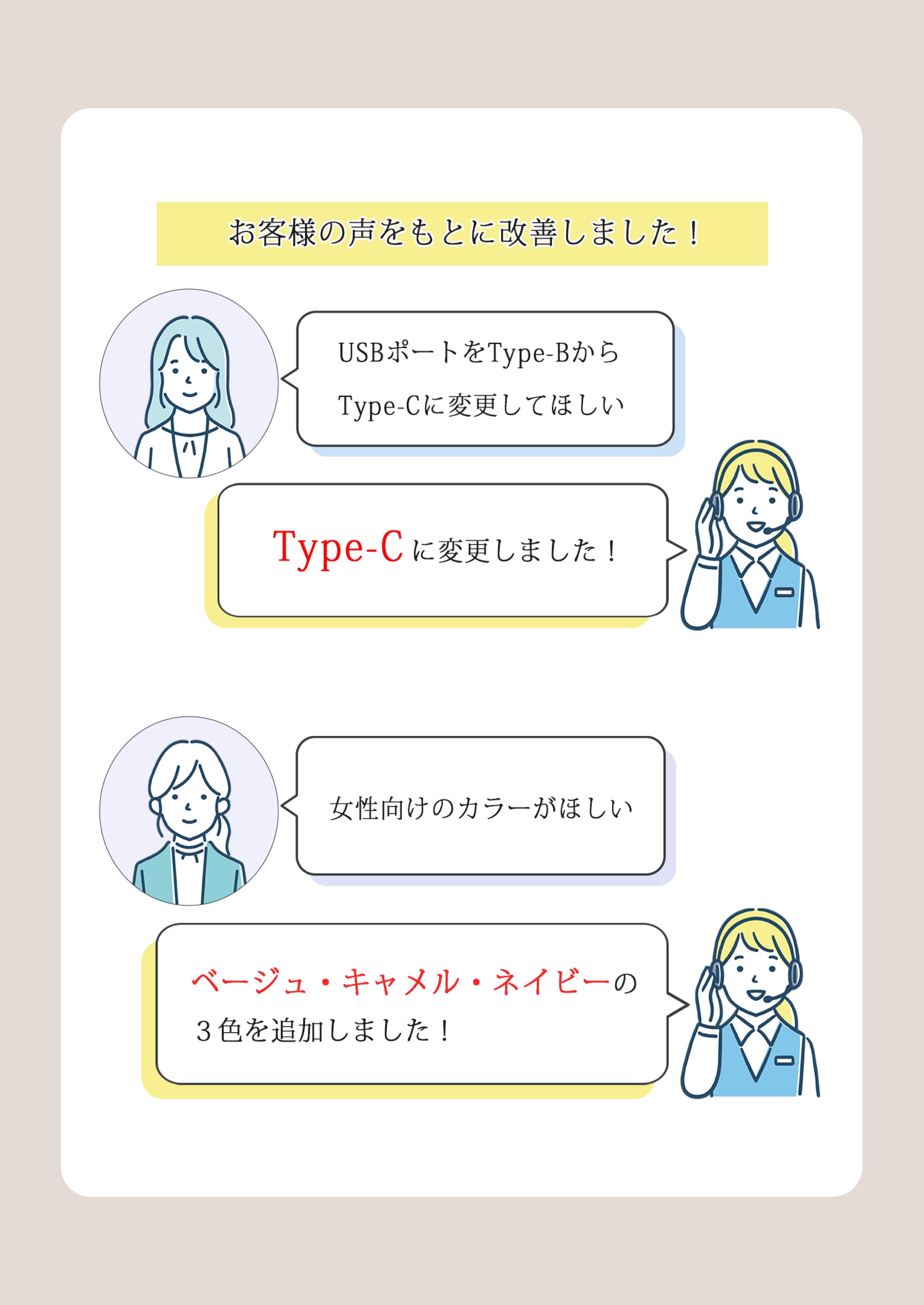 " お客様の声にお応えして " USBジャックをタイプCへ変更しました!