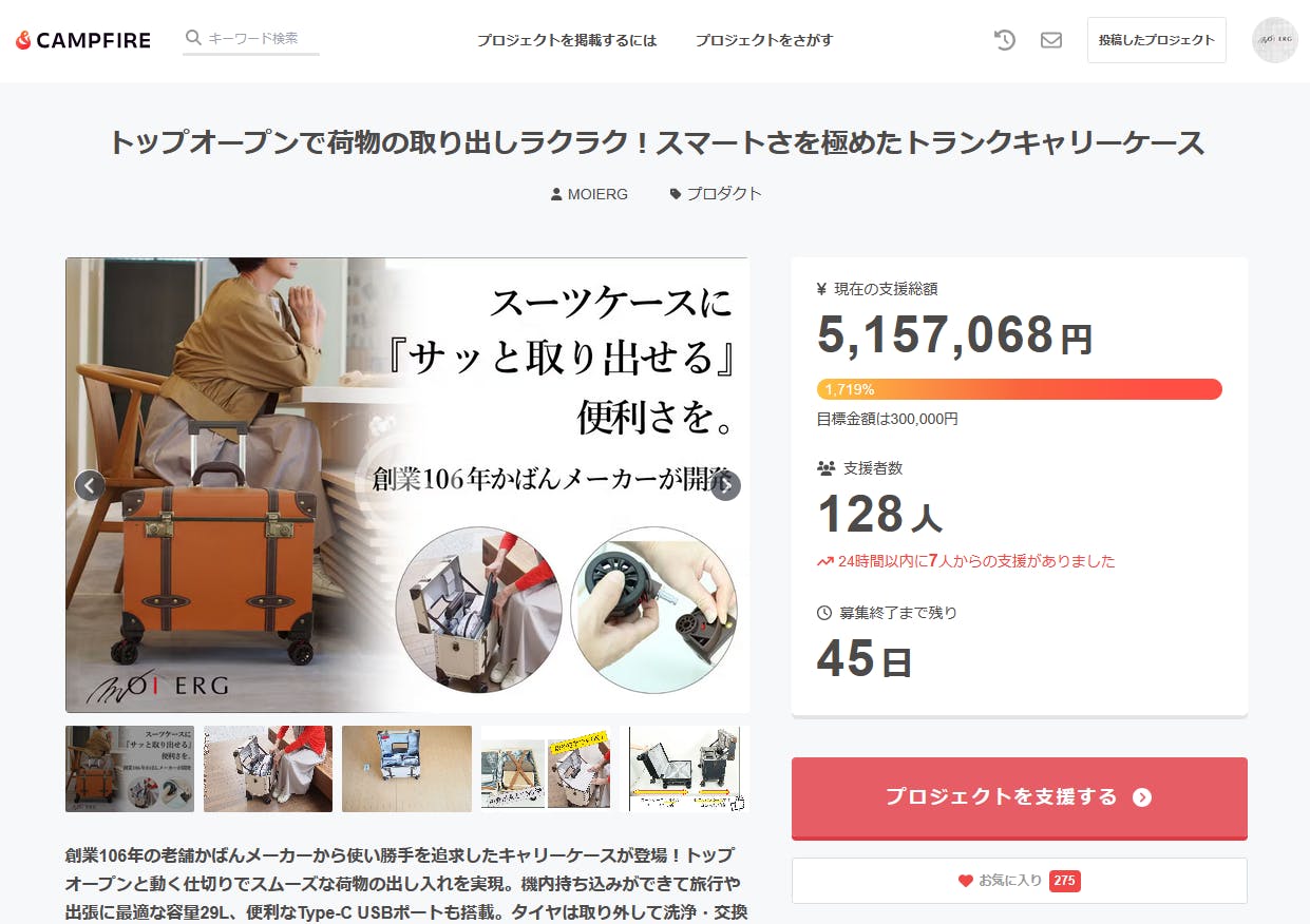 皆様のおかげでCampfireで500万円を達成しました。