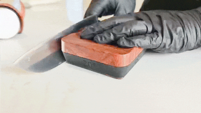 基本的に、両刃の包丁は角度を15°にして研ぐと切れ味が良くなりますが、普段から研がれていない包丁や、アウトドアナイフ、特殊なナイフなどは、大きな角度から順に研いでいくことをオススメします。
