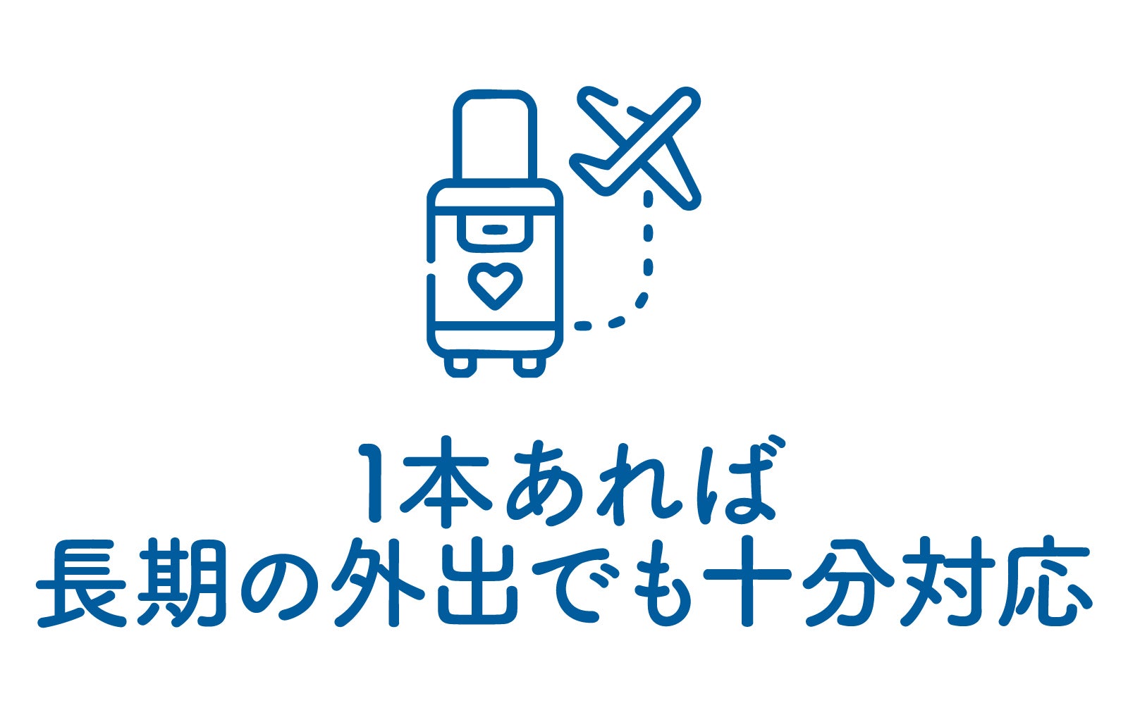 O2PETeau 1本あたりの酸素含有量は一般的な500mlの酸素水の30本分に相当するので、長期の旅行でもO2PETeau 1~2本で十分対応できます。