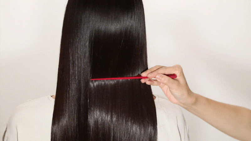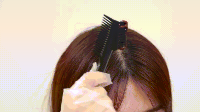 ②専用のコームを使用し、カラーリングしたい部分に十分にカラー剤を付けます。(塗り残しが無いようにご注意ください)