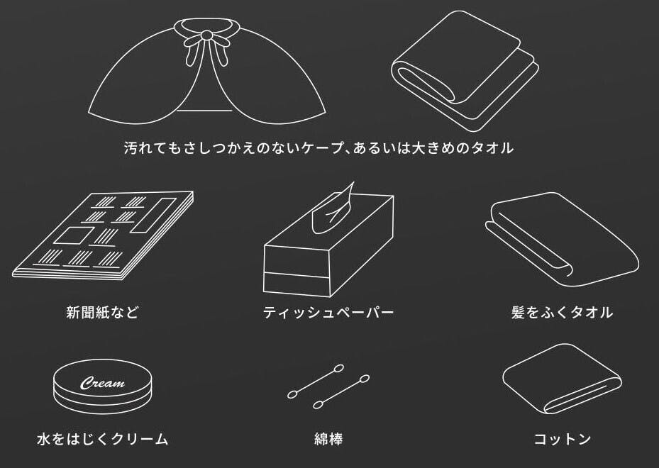・髪が濡れているとき(運動などで多量の汗をかいたとき、雨に濡れたとき、洗髪後など)。