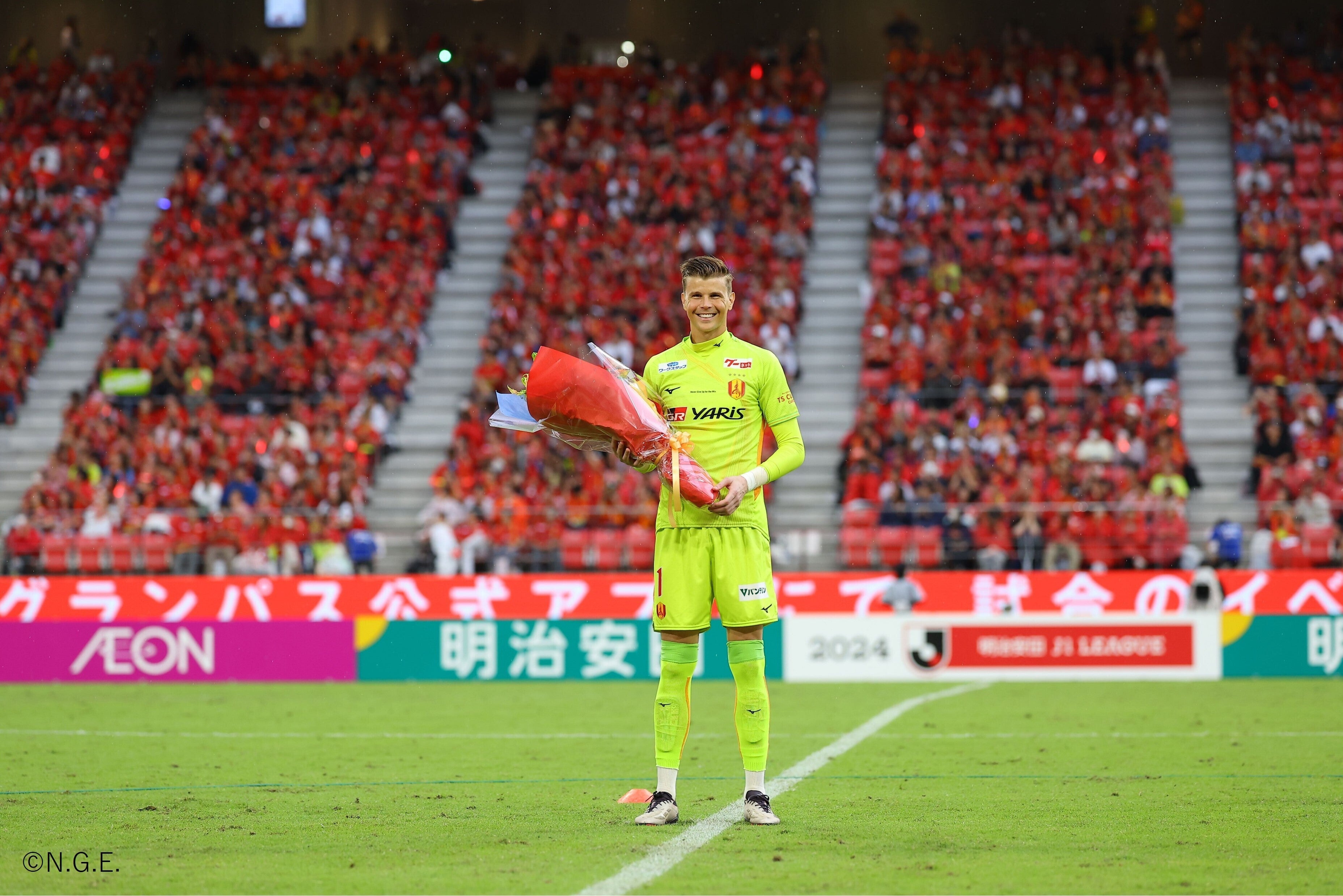 2018年シーズンの入団以来、名古屋グランパスのゴールマウスに立ちはだかり続けたミッチェル・ランゲラック選手。その卓越した反射神経とセービング能力でチームの勝利に大きく貢献してきました。