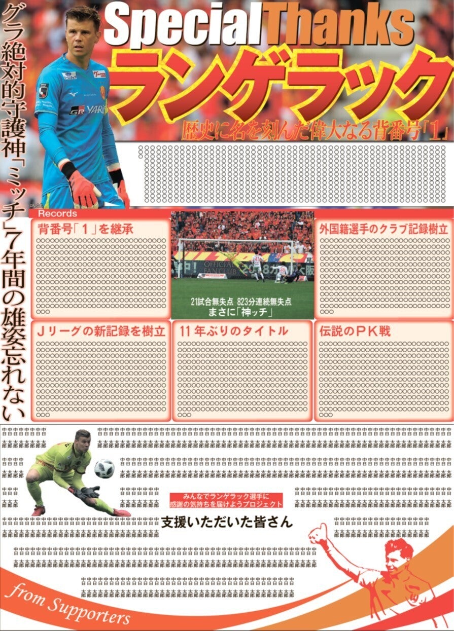 そんな我らの守護神が、2024年シーズン限りで名古屋グランパスを退団します。多くのグランパスファミリーに興奮を与えてきたその勇姿を見られなくなることは残念ですが、ランゲラック選手への感謝の気持ちを届けるため、今シーズン最終戦12月8日の中日スポーツにて記念特集を掲載し、盛大に送別する特別プロジェクトを実施します。今年で創刊70周年を迎える中日スポーツが、全力でランゲラック選手を応援します。