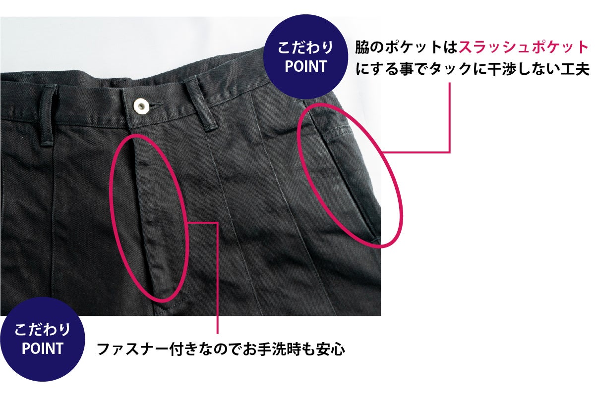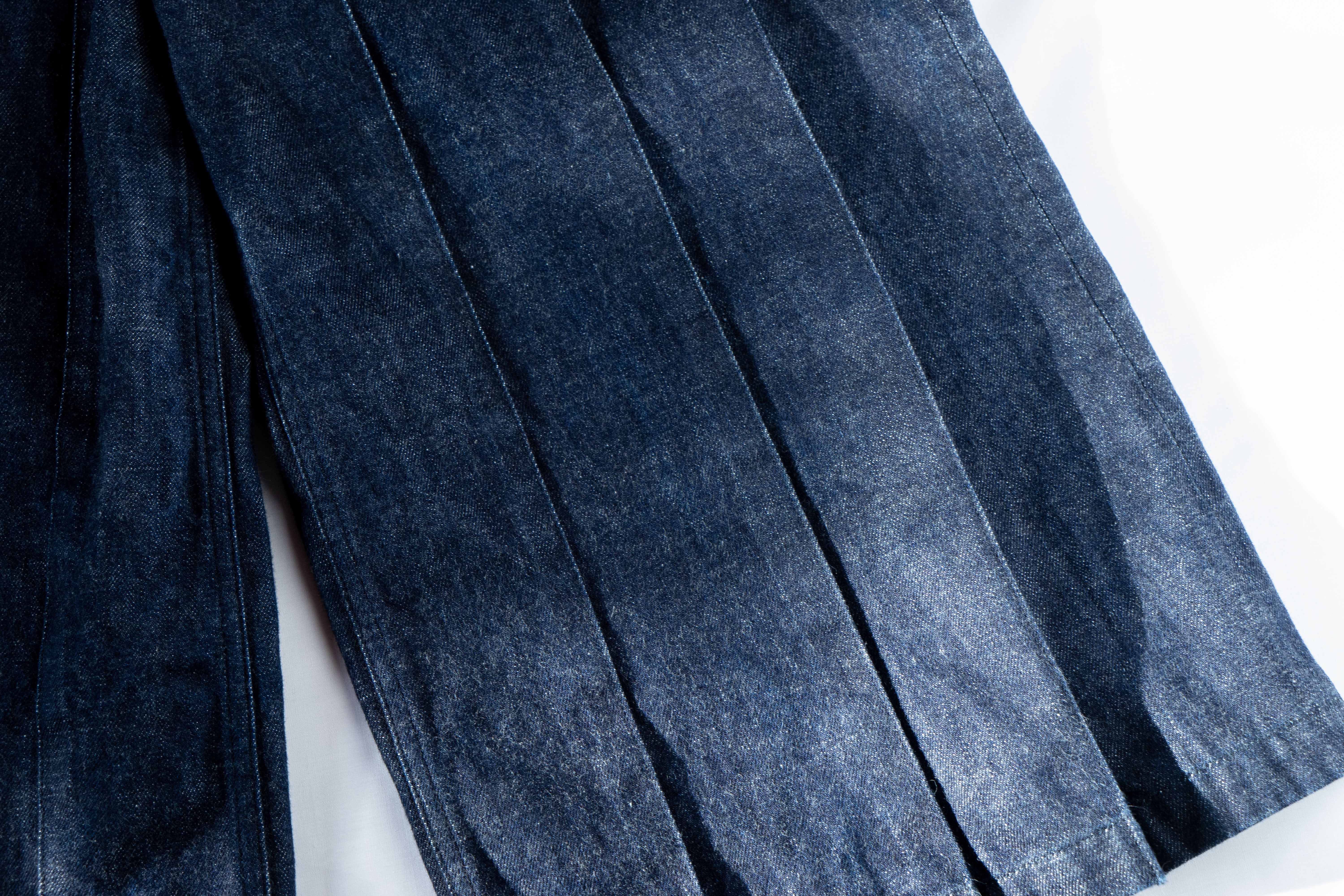 お客様のお好みで洗濯後アイロンをしてビシッとさせるのも、フラットに履いて頂くのも楽しみ方の一つだと考えております。