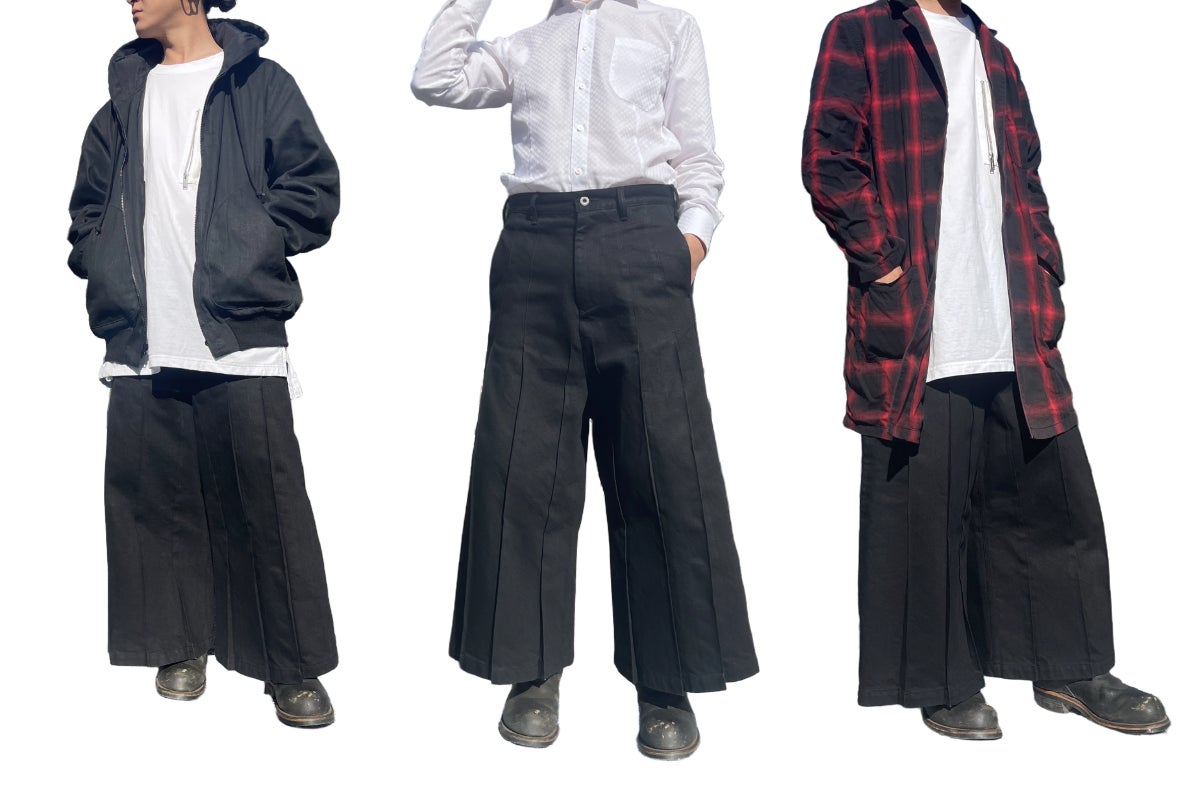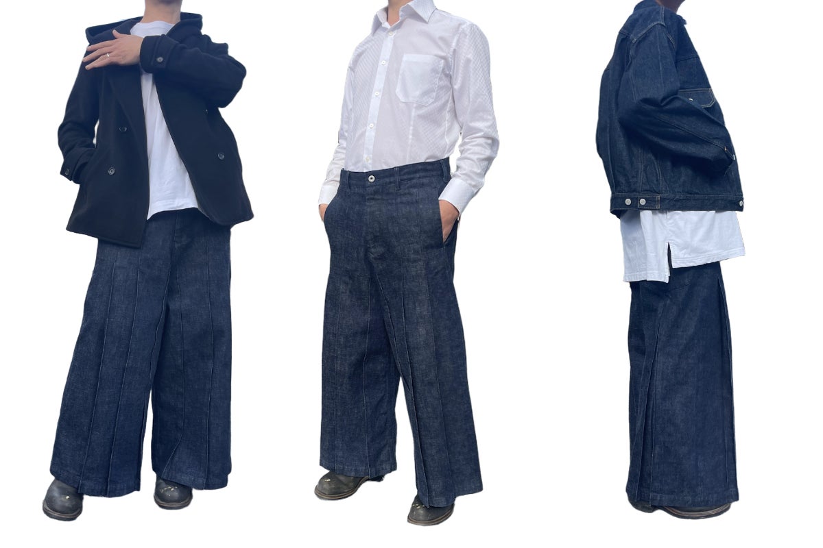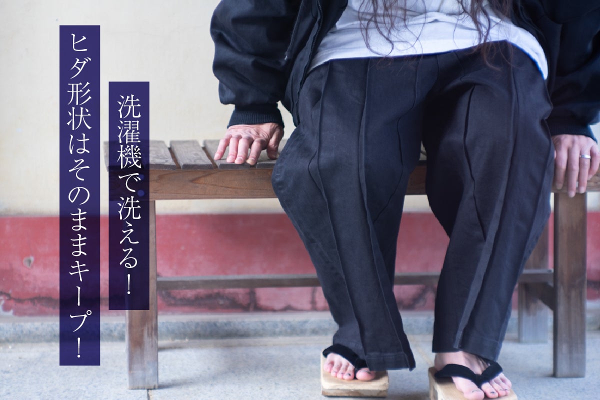 今回のリターンとしてご用意した『revival 袴』は、トレンドや流行を取り入れつつ、昔ながらの袴には無かった機能性を取り入れた次世代の袴として再構築した製品になります。これまでの袴の印象を大きく変えながらも袴のディテールをいかしたユニークなボトムスアイテムです。