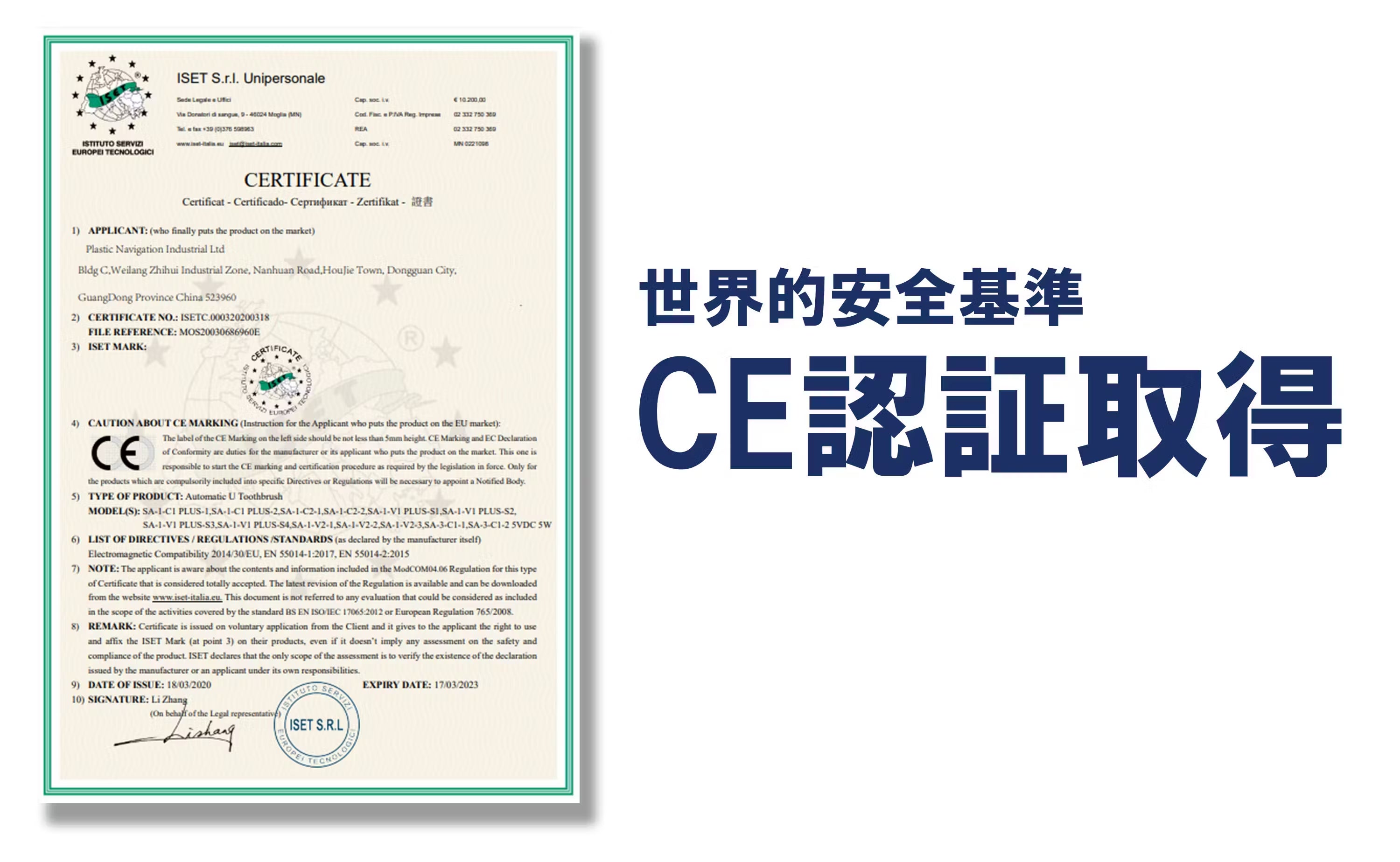また、CE認証を受けている製品は、環境や健康に対するリスクが適切も管理されており、SonicPearlがをクリアしていることから、長期間にわたって安心して使用できるという信頼を持つことができる証となります。