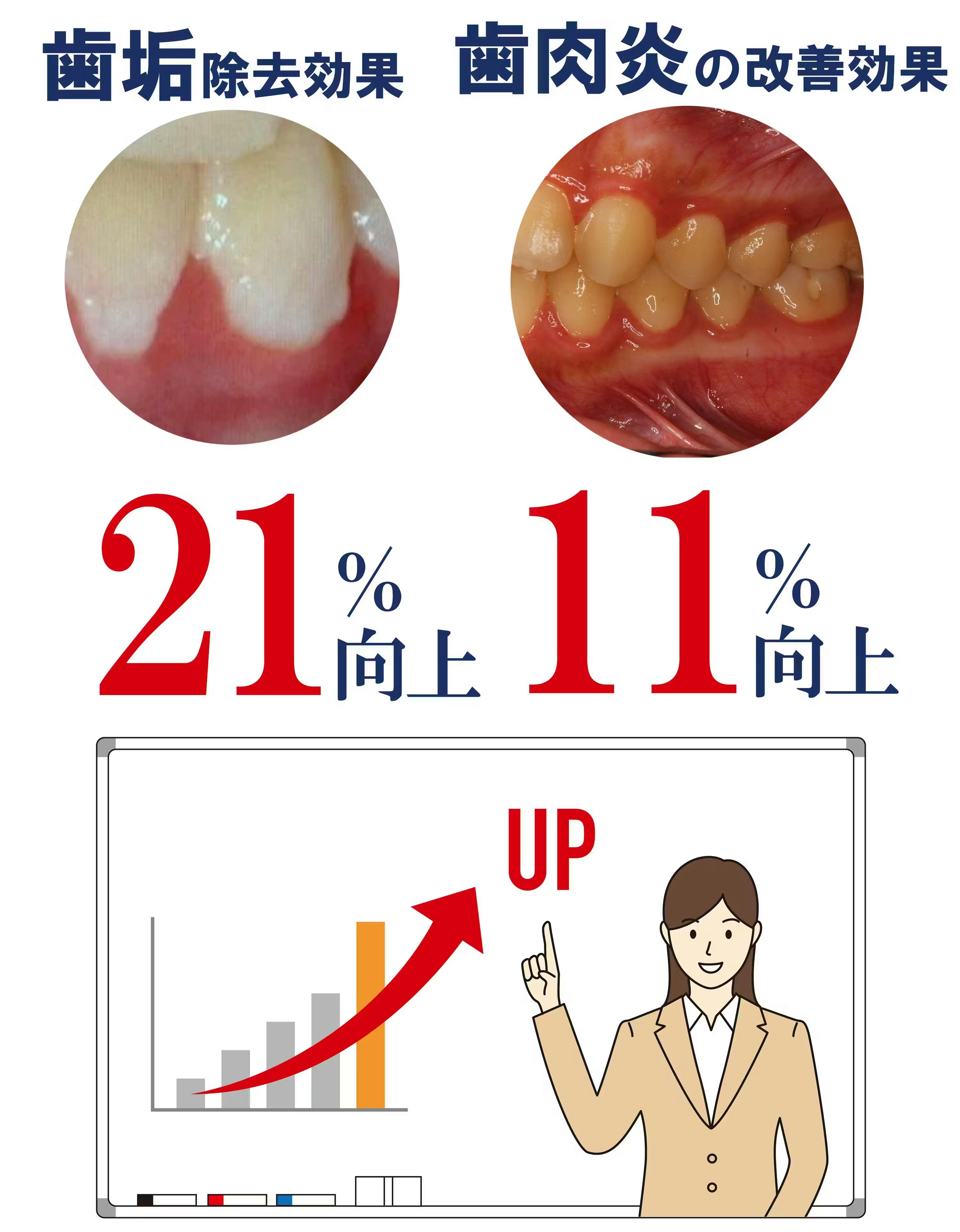 - また、歯肉炎の改善においても、電動歯ブラシは手動歯ブラシより約11%効果的であると示されました。