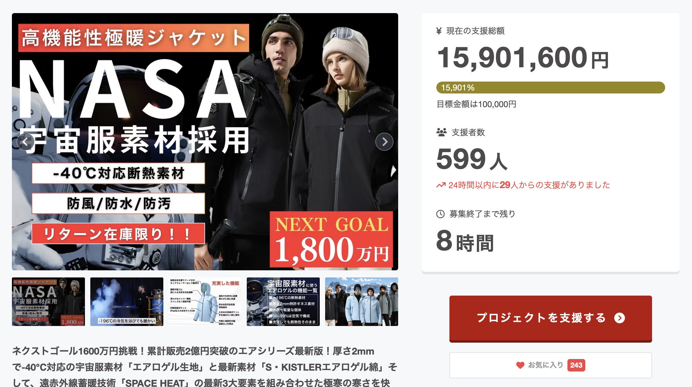 【新プロジェクト公開のお知らせ|極寒対応「エアロゲルブルゾン」登場!】